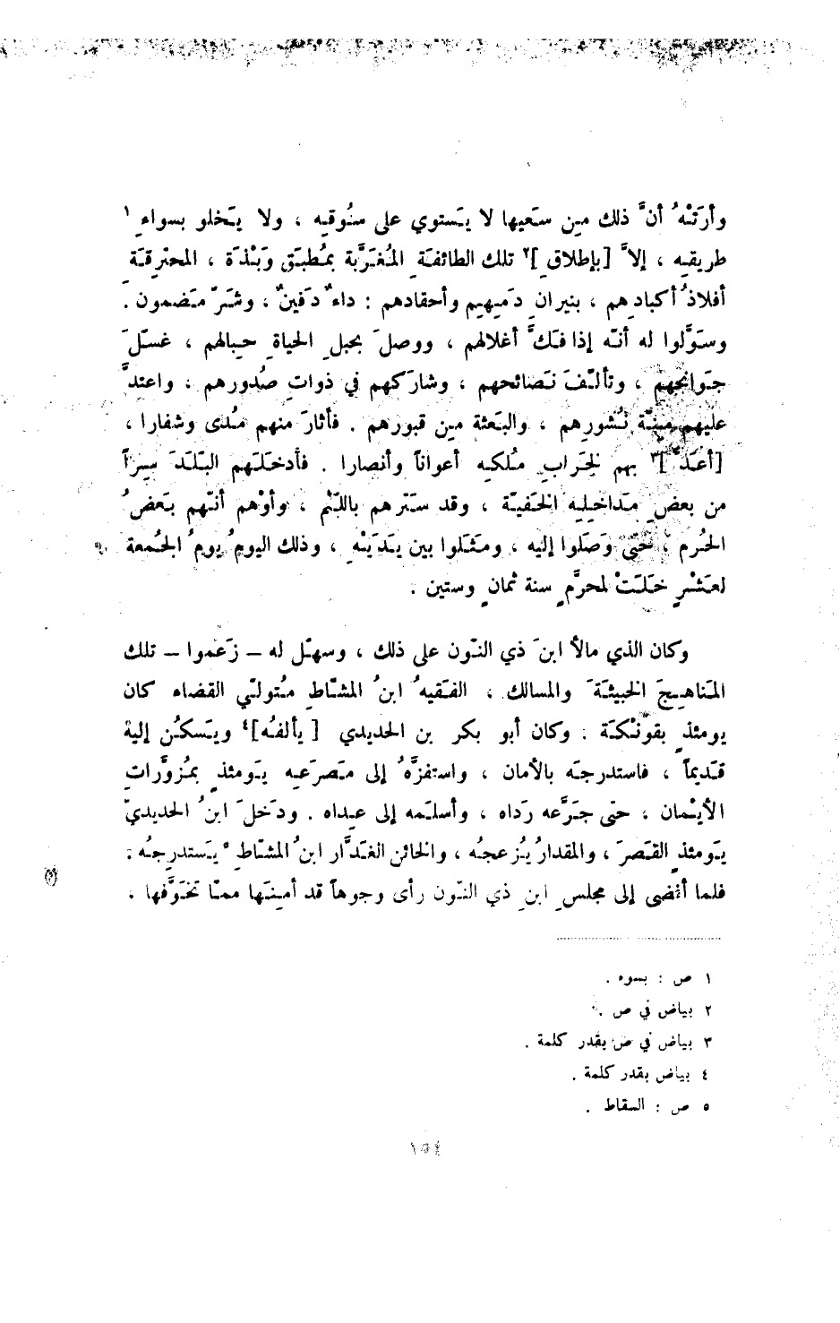 وأرته أن ذلك من سعيها لا يستوي على سوقه، ولا يخلو بسواء طريقه، إلا [بإطلاق] تلك الطائفة المغربة بمطبق وبذة، المحترقة أفلاذ أكبادهم، بنيران دمهم وأحقادهم: داء دفين، وشر مضمون. وسولوا له أنه إذا فك أغلالهم، ووصل بحبل الحياة حبالهم، غسل جوانحهم، وتألف نصائحهم، وشاركهم في ذوات صدورهم، واعتد عليهم منة نشورهم، والبعثة من قبورهم. فأثار منهم مدى وشفاراً، [أعد] بهم لخراب ملكه أعواناً وأنصاراً. فأدخلهم البلد سراً من بعض مداخله الخفية، وقد سترهم باللثم، وأوهم أنهم بعض الحرم، حتى وصلوا إليه، ومثلوا بين يديه، وذلك اليوم يوم الجمعة لعشر خلت لمحرم سنة ثمان وستين.