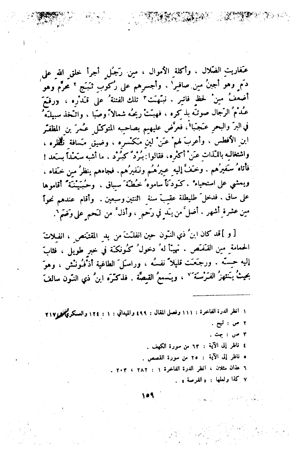 عفاريت الظلال، وأكلة الأموال، من رجل أجرأ خلق الله على دم وهو أجبن ممن صافر، وأجسرهم على ركوب ثبج محرم وهو أضعف من لحظ فاتر، نبهت تلك الفتنة على قدره، ورفع عدم الرجال صوته بذكره، فهبت ريحه شمالاً وصبا، واتخذ سبيله في البر والبحر عجبا، فعرض عليهم بصاحبه المتوكل عمر بن المظفر ابن الأفطس، وأعرب لهم عن لين مكسره، وضيق مسافة نظره، واشتغاله باللذات عن أكثره، فقالوا: برد كبرد، ما أشبه سعدا بسعد! فأتاه سفيرهم، وخف إليه عيرهم ونفيرهم، فجاءهم ينظر من خفاء، ويمشي على استحياء، كودنا ساموه خطة سباق، وحبينة أقاموها على ساق، فدخل طليطلة عقب سنة اثنتين وسبعين، وأقام عندهم نحوا من عشرة أشهر، أضل من يد في رحم، وأذل من لحم على وضم.
