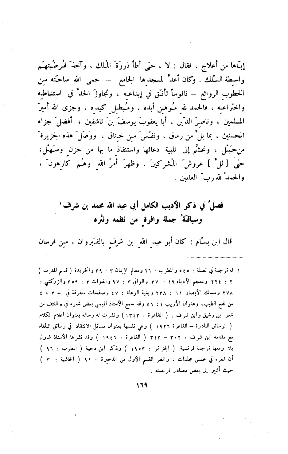 فصل في ذكر الأديب الكامل أبي عبد الله محمد بن شرف