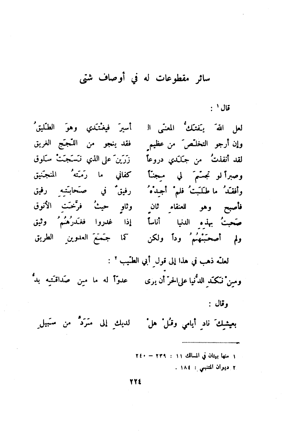 ولم أصحبهم ودا ولكن ... كما جمع العدوين الطريق لعله ذهب في هذا القول إلى قول أبي الطيب: