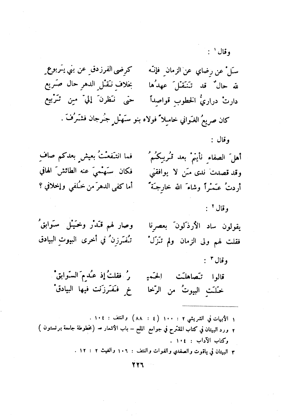 دارت دراري الخطوب قواصداً ... حنى نظرن إلي من تربيع - كان صريع الغواني حاملاً فولاه بنو سهلِ جرجان فشرف.