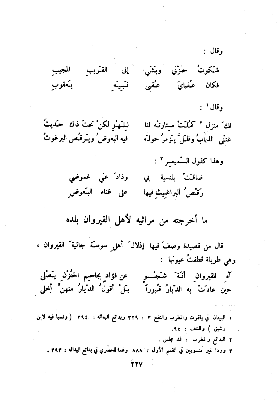 رقصُ البراغيث فيها ... على غناء البعوض - ما أخرجته من مراثيه لأهل القيروان بلده