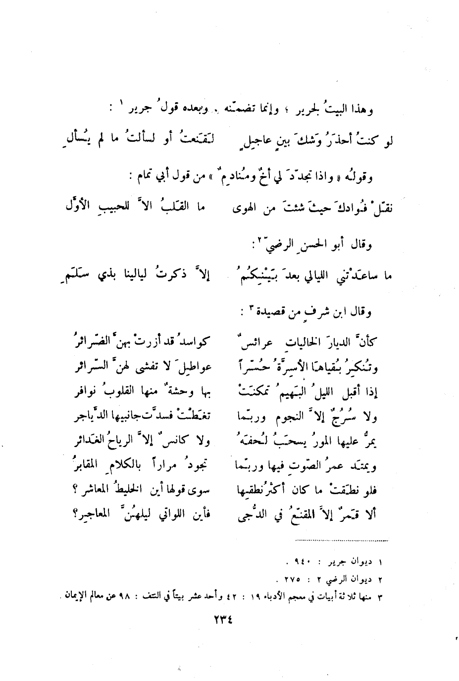 - نقلْ فؤادكَ حيثَ شئتَ من الهوى ... ما القلب إلا للحبيبِ الأول وقال أبو الحسنِ الرضي: