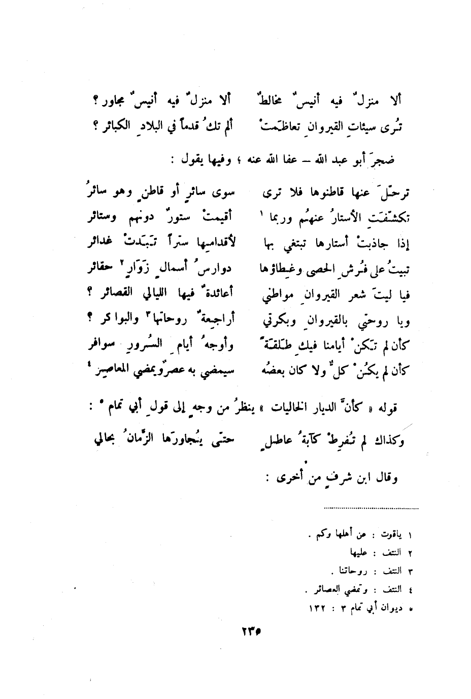كأن لم يكن كلٌ ولا كان بعضه ... سيمضي به عصرٌ ويمضي المعاصر قولهُ " كأن الديار الخاليات " ينظر من وجهٍ إلى قول أبي تمام: