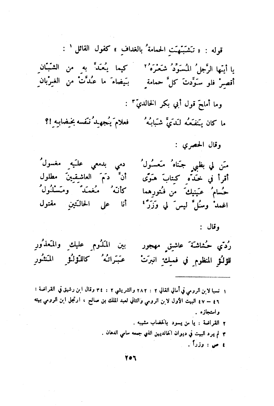 أقصر فلو سودت كل حمامة ... بيضاء ما عدت من الغربان وما أملح قول أبي بكر الخالدي: