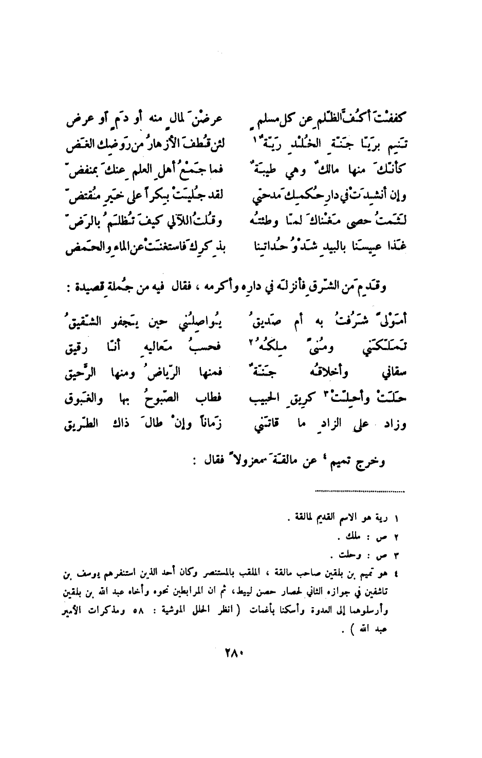 وزاد على الزاد ما قاتني ... زماناً وإن طال ذاك الطريق وخرج تميم عن مالقة معزولاً فقال: