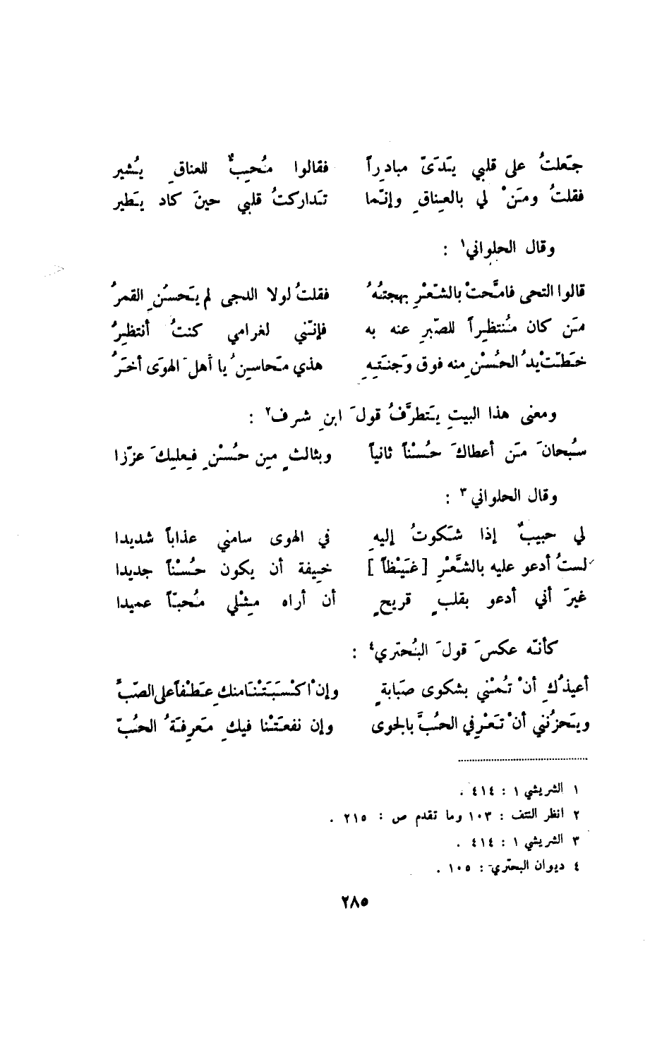 سبحان من أعطاك حسناً ثانياً ... وبثالث من حسن فعلك عززا وقال الحلواني: