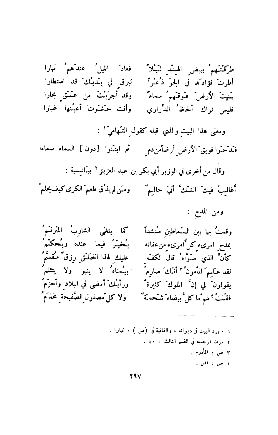 فدحوا فويق الأرض أرضاً من دم ... ثم ابتنوا [دون] السماء سماءا وقال من أخرى في الوزير أبي بكر بن عبد العزيز ببلنسية: