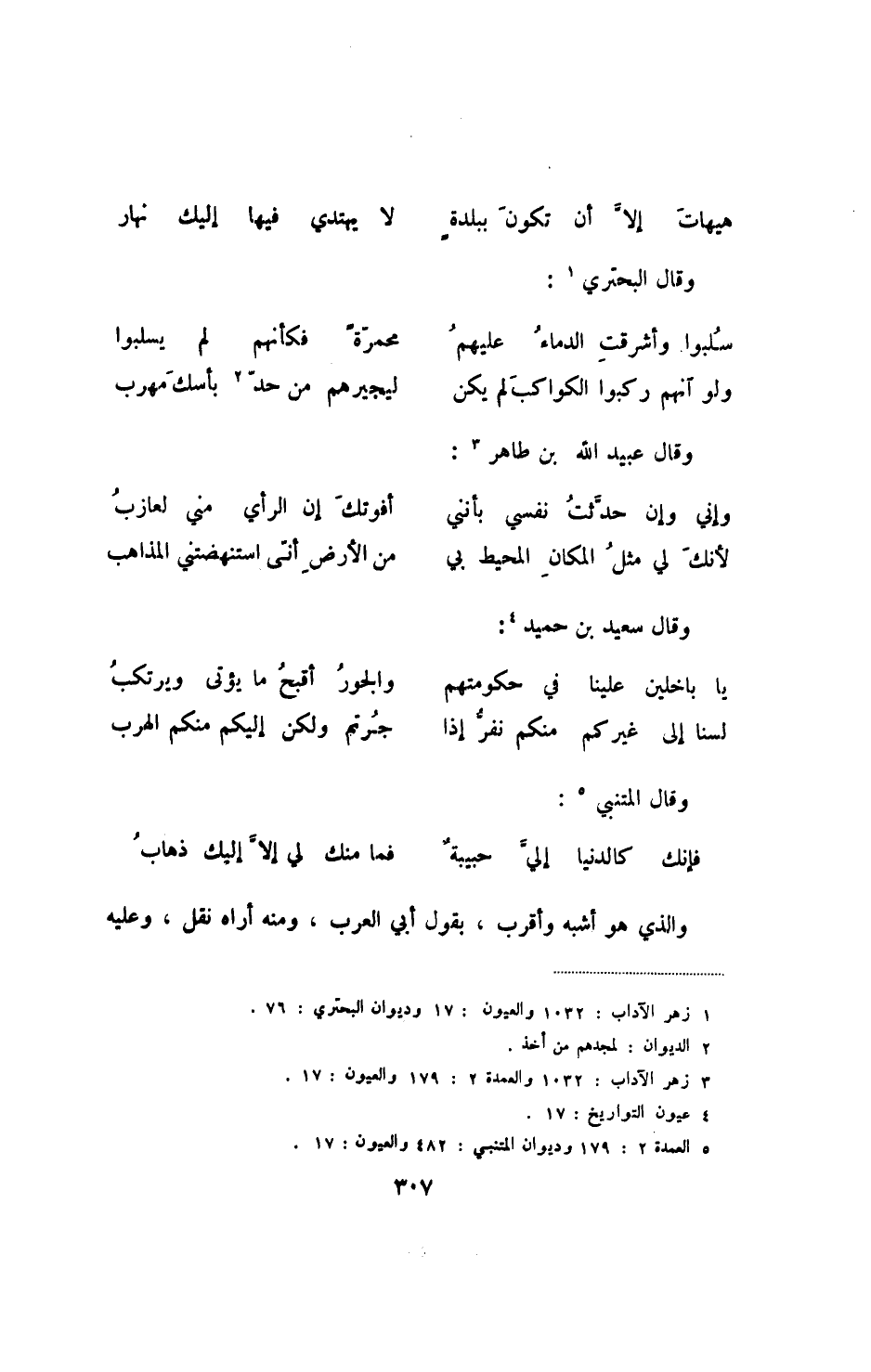 هيهات إلا أن تكون ببلدة ... لا يهتدي فيها إليك نهار وقال البحتري:
