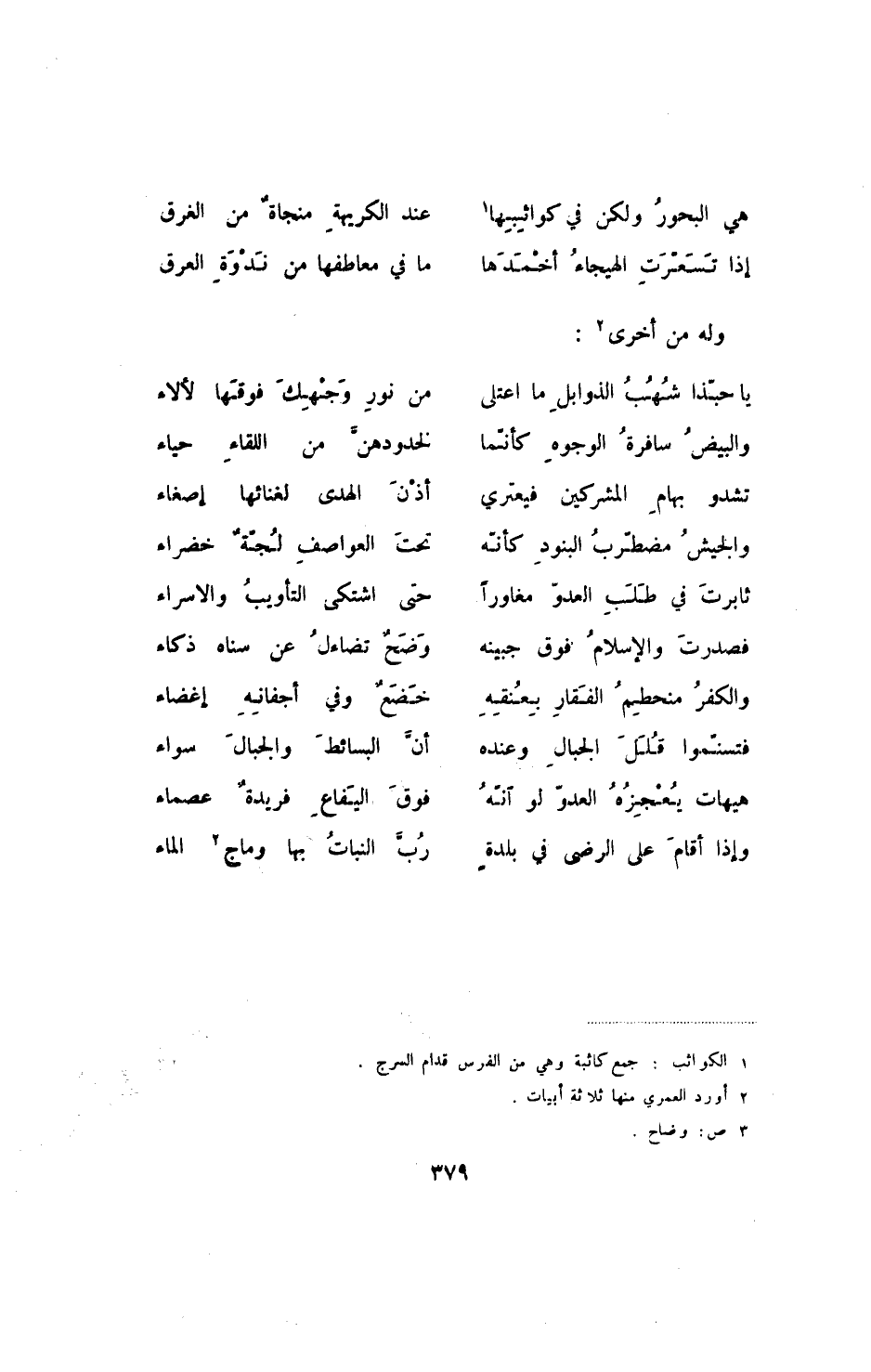 هي البحور ولكن في كواثبها ... عند الكريهة منجاة من الغرق