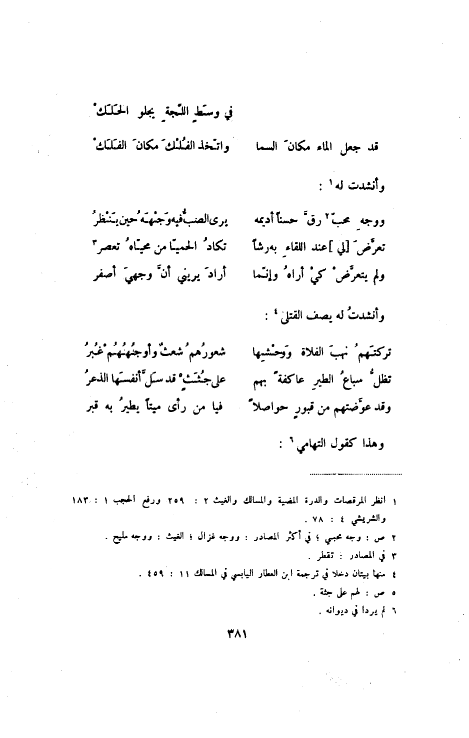 قد جعل الماء مكان السما ... واتخذ الفلك مكان الفَلَك وأنشدت له: