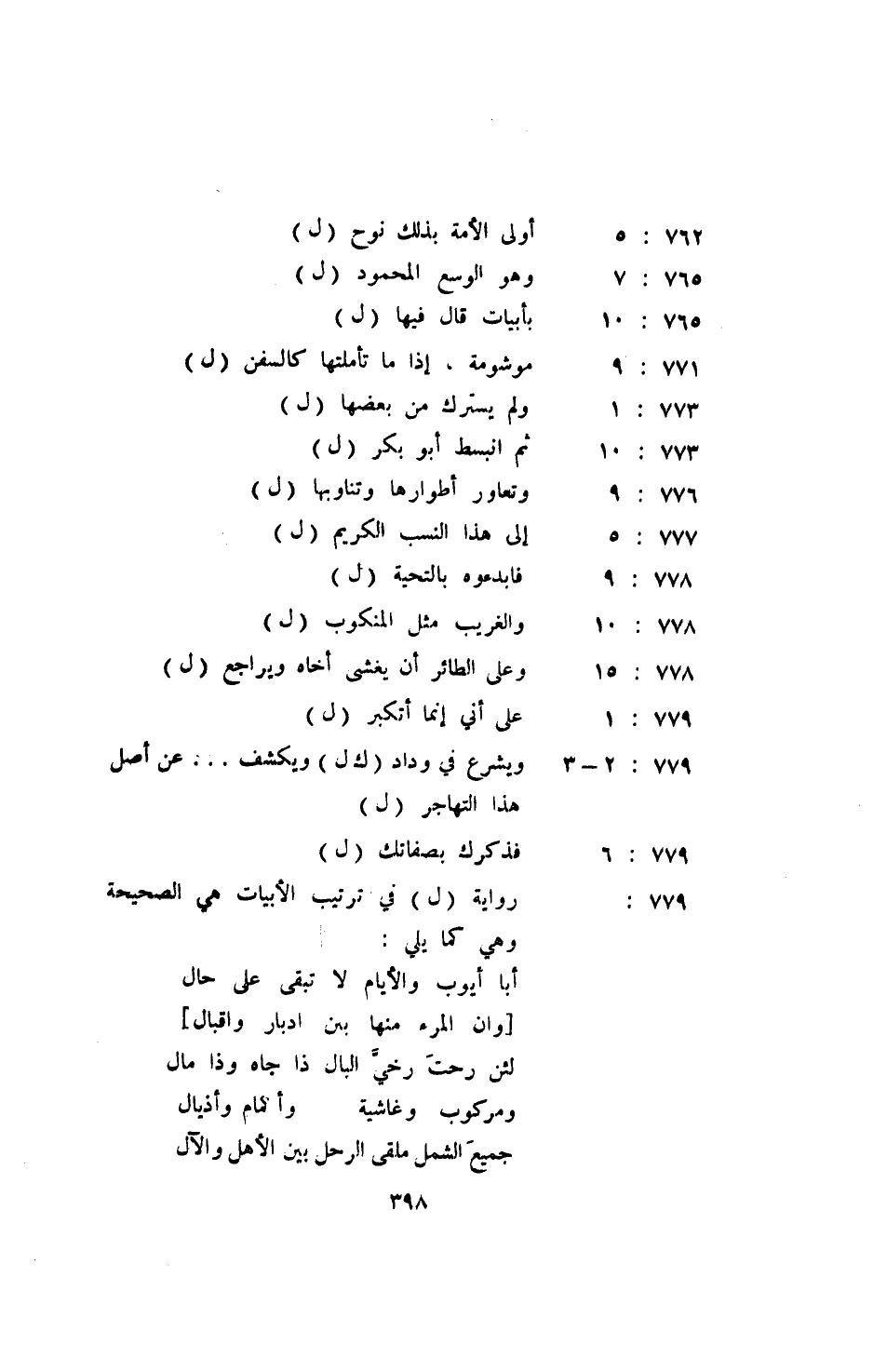 779: - رواية (ل) في ترتيب الأبيات هي الصحيحة وهي كما يلي:
