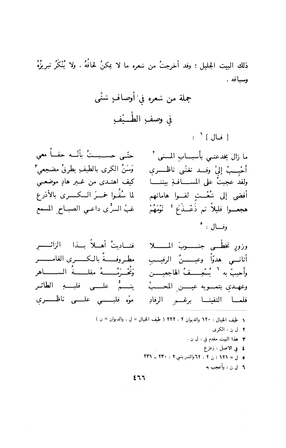 إن طيف الخيال زار طروقاً والمطايا بين القنان وشعب