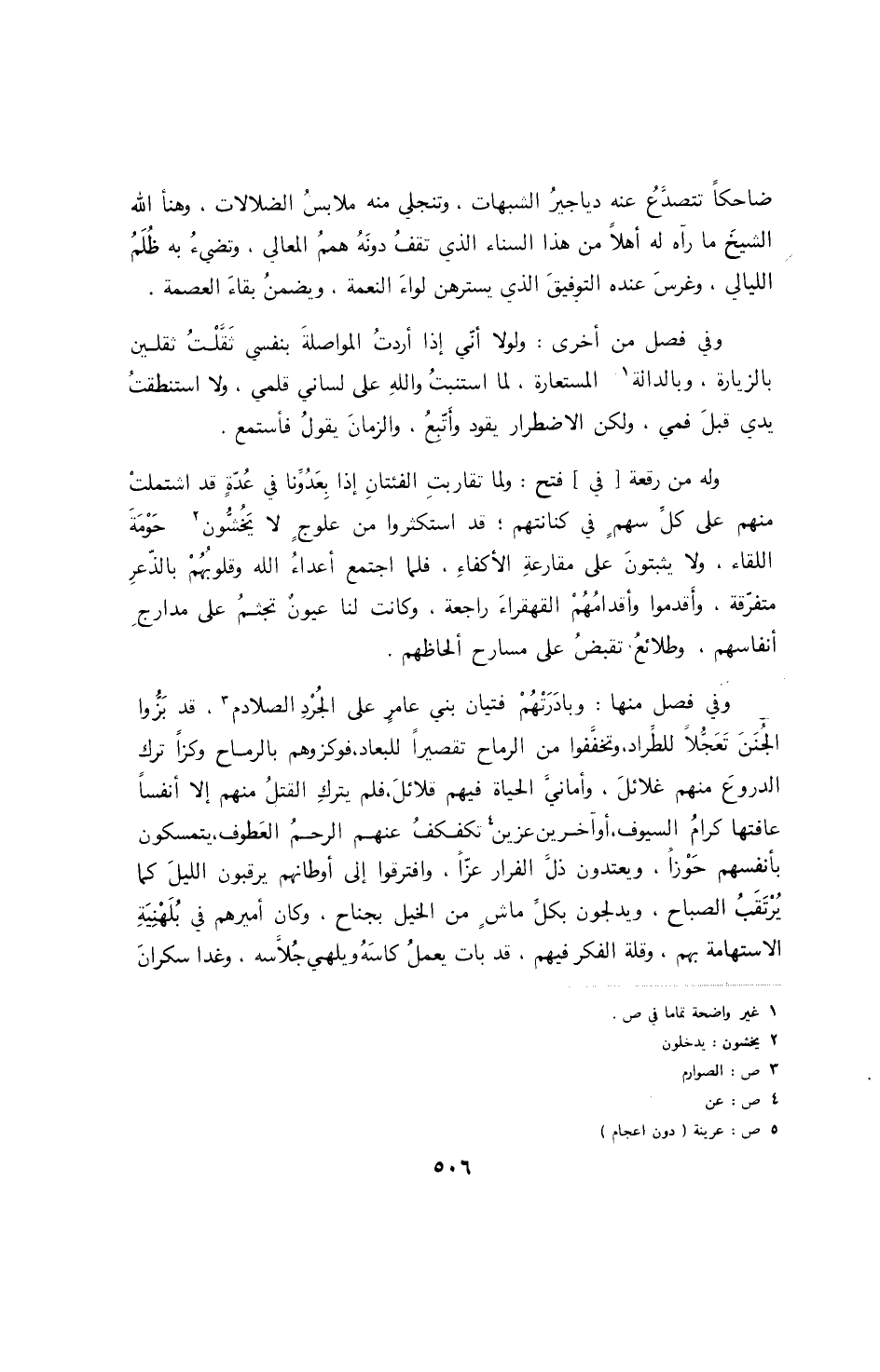 وفي فصل له: وكلما هممت بمفاتحته اعتضرتني خجلة المتاركة، واستوقفتني غفلة المجانبة، وخانت يدي قلمب، فلم تشفه بإظهار ضميره، ولم تحسن النيابة عنه في الاعتذار من تقصيره.
