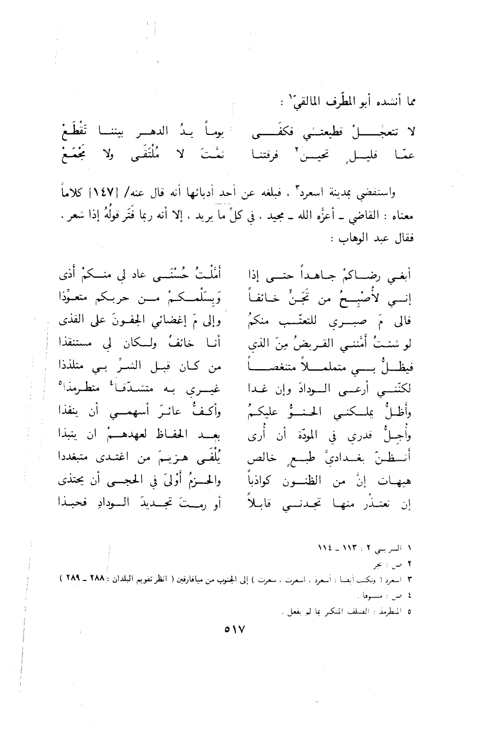 (4) ووردت ثلاثة أبيات منها ياقوت 10: 88 وابن خلكان 2: 173 منسوبة للوزير المغربي: وأربعة في الشريشي 1: 299 للقاضي عبد الوهاب.