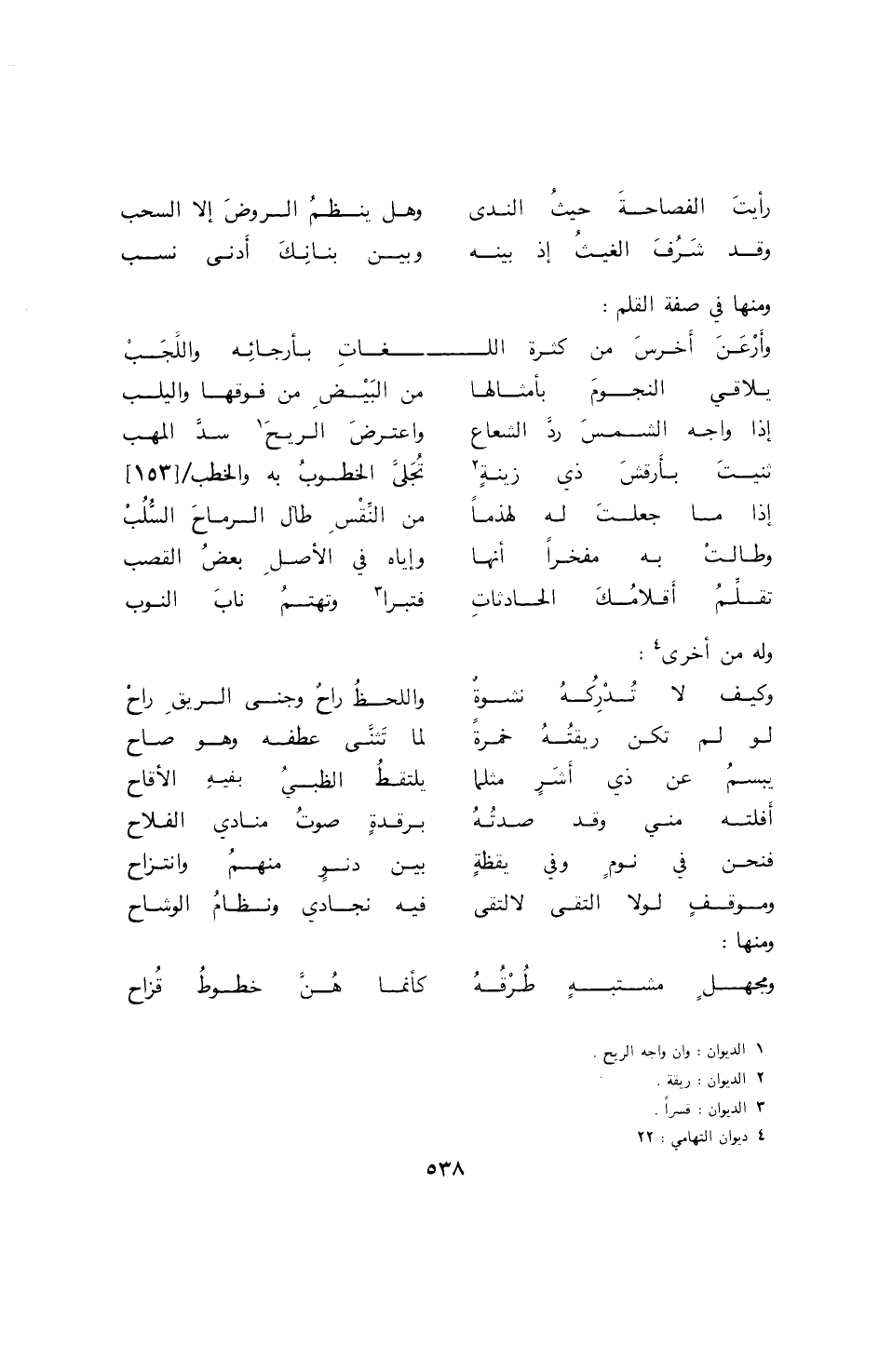 وسمت من لؤلؤه أبحرا ... لؤلؤ عن الكلمات الفصاح (3) ديوان التهامي: 10.