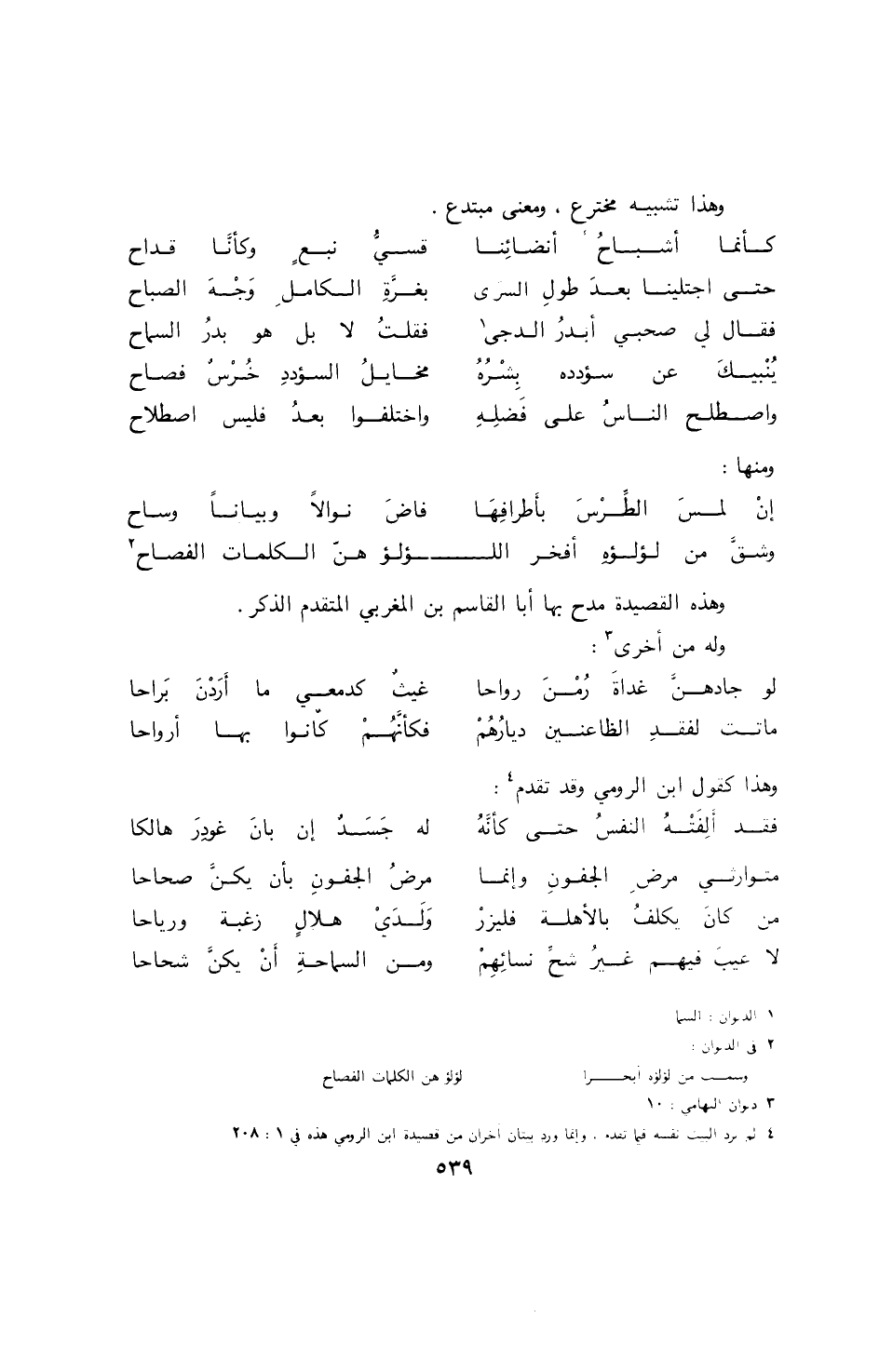 وهذه كقول ابن الرومي، وقد تقدم (1) :