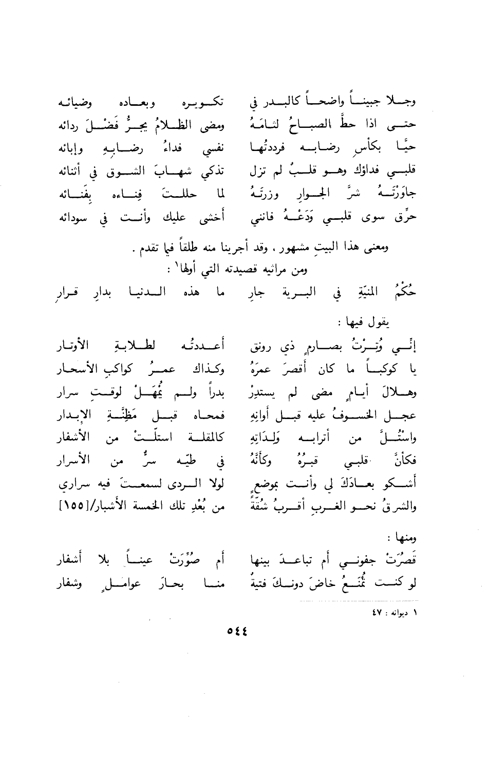 أبا الفضل طال الليل أم خانني صبري فخيل لي أن الكواكب لا تسري