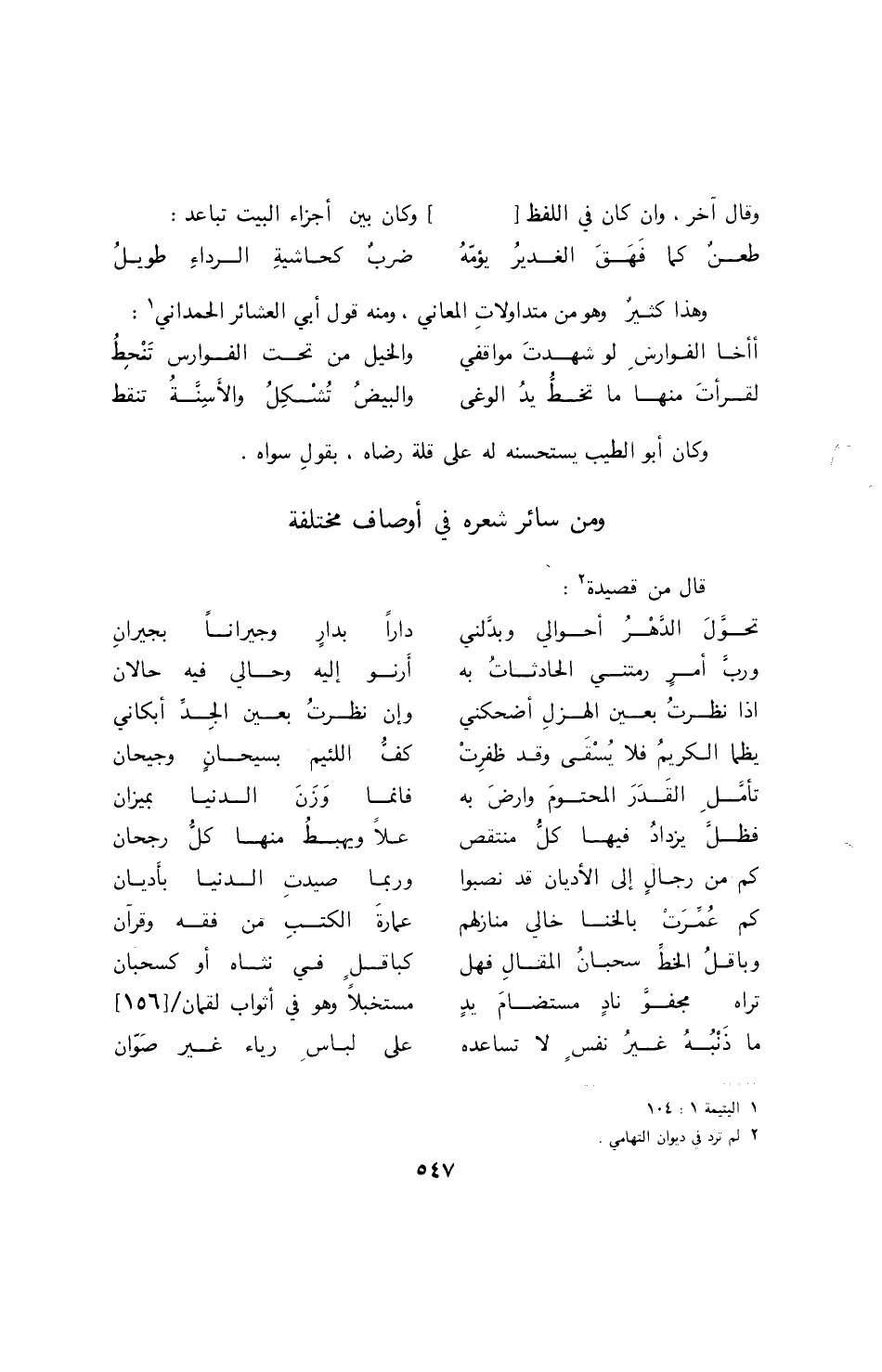 (1) ديوان ابن الرومي: 563 وقد مر في القسم الأول من الذخيرة: 350.