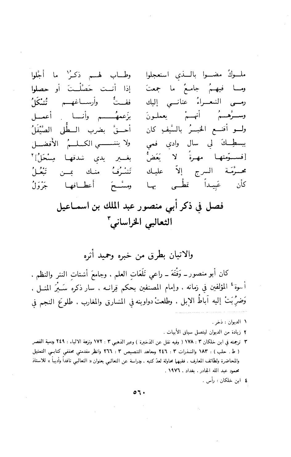 الغياهب، وتواليفه أشهر مواضع، وابهر مطالع، وأكثر راوٍ لها وجامع، من أن يستوفيها عد أو صف، أو يوفيها حقوقها نظم أو رصف، وقد أخرجت من نثره فصولاً أدرجها في أثناء كتبه، ومن نظمه جملاً وتفاصيل أعرب بها عن ترقرق طبعه وتدفق أدبه، تشارك الأرواح في الأجساد، وتقعد للاقتراح بالمرصاد.