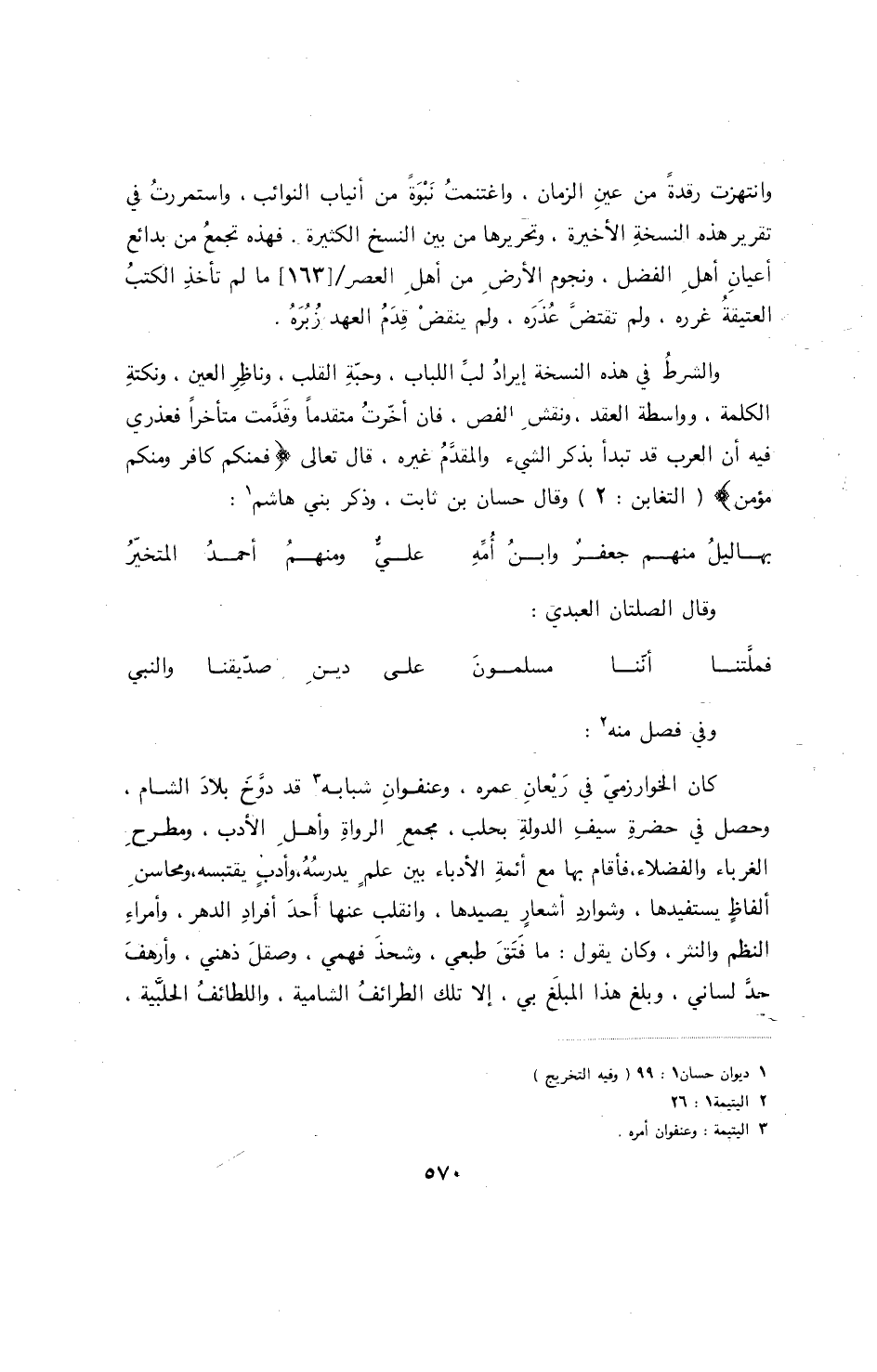 التي علقت بحفظي، وامتزجت بأجزاء نفسي، وغصن الشباب رطيب، وبرد (1) الحداثة قشيب.
