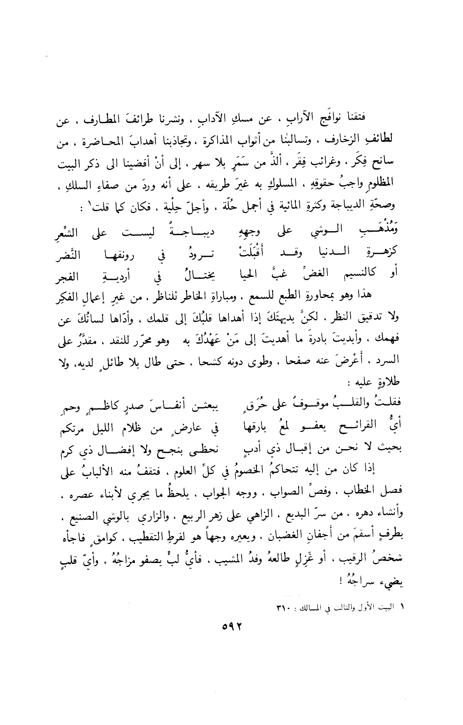 (2) البيت الأول في المسالك: 311 وما بين معقفين زيادة عنه أيضاً؛ والأبيات جميعاص في الشريشي 5: 227.