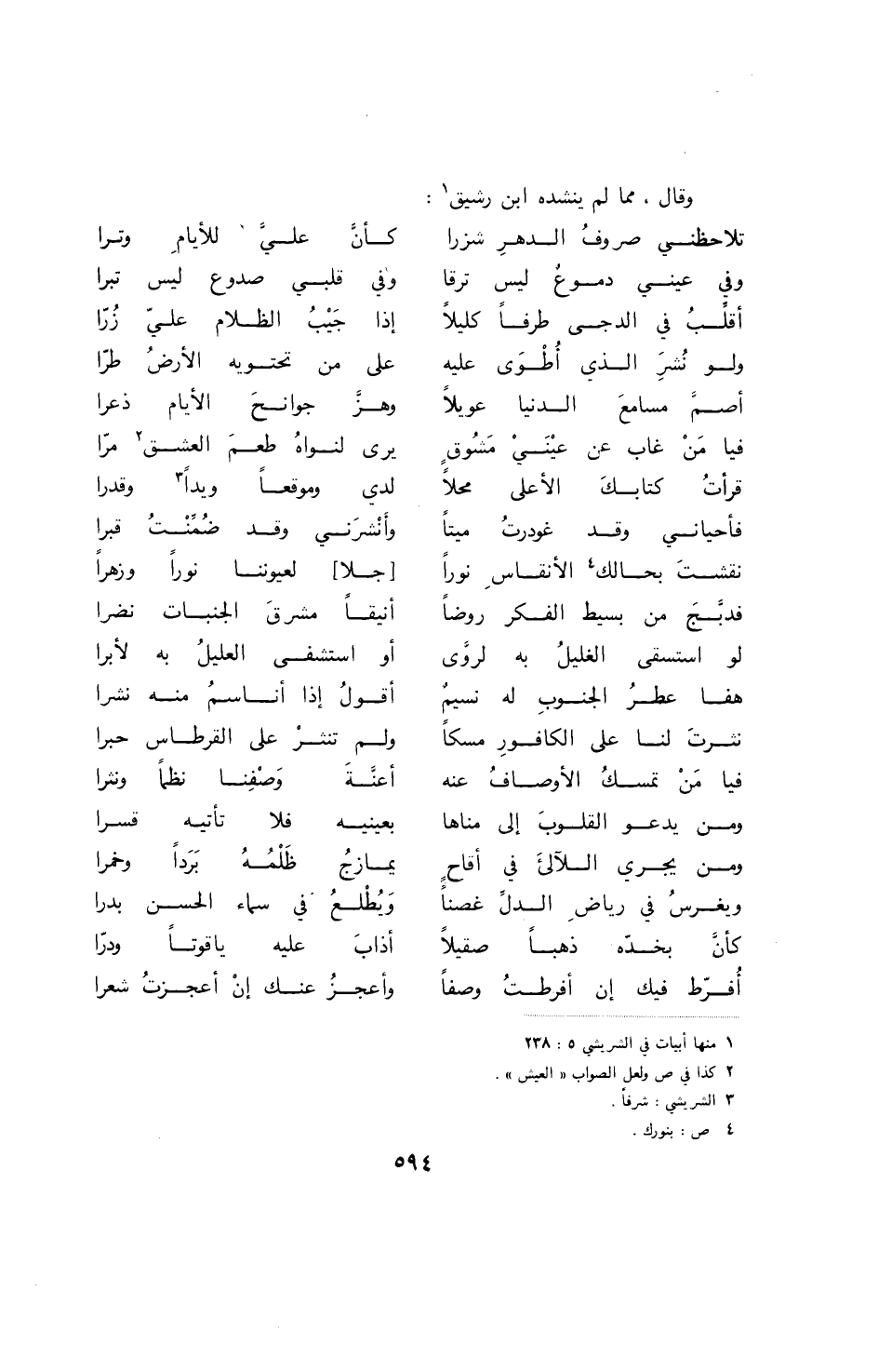 (4) وردت القصة والأبيات في الشريشي 3: 117 وابن خلكان 1: 394 (نقلاً عن الذخيرة) .