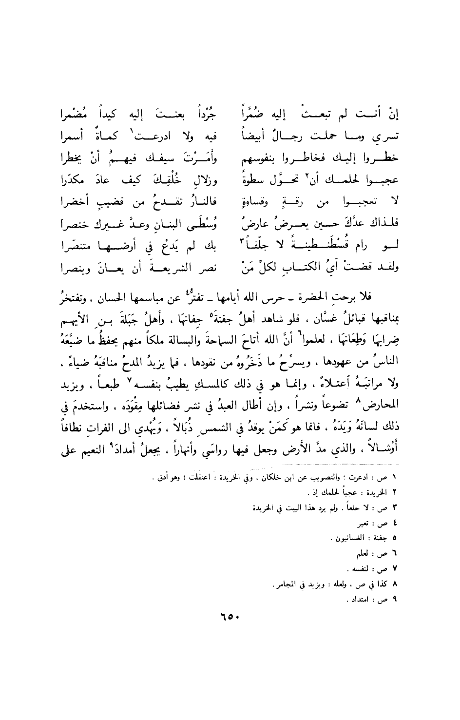 الحضرة مغدقةً، ووفود المواهب بساحاتها محدقة، ويمتع الدنيا بمحاسنها التي يتطامن لها ذو الأبصار، وتتأرجح تأرج القطر في جميع الأقطار.