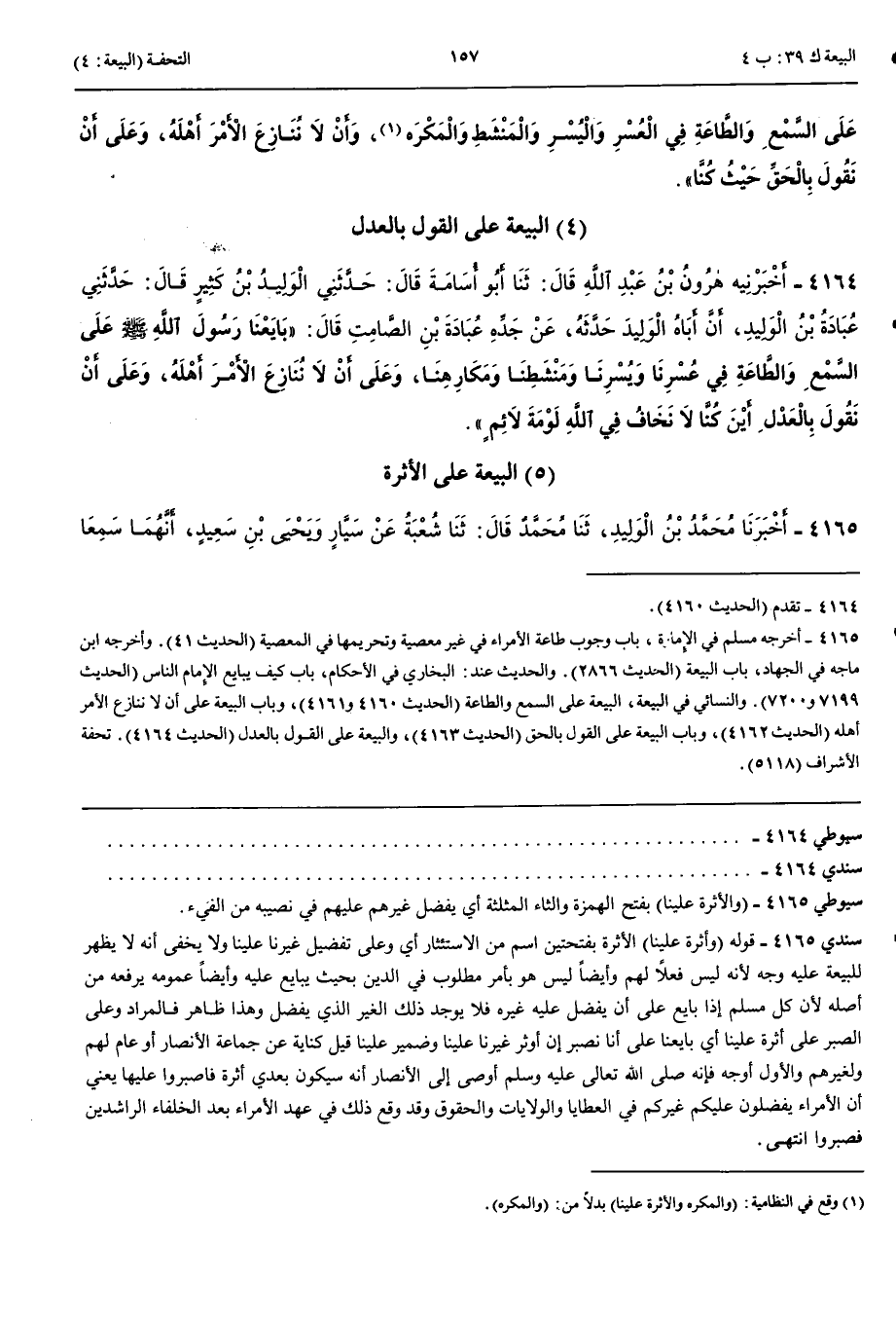الْبَيْعَةُ عَلَى الْأَثَرَةِ 4165 - أَخْبَرَنَا مُحَمَّدُ بْنُ الْوَلِيدِ قَالَ حَدَّثَنَا مُحَمَّدٌ قَالَ حَدَّثَنَا شُعْبَةُ عَنْ سَيَّارٍ وَيَحْيَى بْنِ سَعِيدٍ أَنَّهُمَا سَمِعَا عُبَادَةَ بْنَ الْوَلِيدِ يُحَدِّثُ عَنْ أَبِيهِ أَمَّا سَيَّارٌ فَقَالَ عَنْ أَبِيهِ وَأَمَّا يَحْيَى فَقَالَ عَنْ أَبِيهِ عَنْ جَدِّهِ قَالَ بَايَعْنَا رَسُولَ اللَّهِ صَلَّى اللَّهُ عَلَيْهِ وَسَلَّمَ عَلَى السَّمْعِ وَالطَّاعَةِ فِي عُسْرِنَا وَيُسْرِنَا وَمَنْشَطِنَا وَمَكْرَهِنَا وَأَثَرَةٍ عَلَيْنَا وَأَنْ لَا نُنَازِعَ الْأَمْرَ أَهْلَهُ وَأَنْ نَقُومَ بِالْحَقِّ حَيْثُمَا كَانَ لَا نَخَافُ فِي اللَّهِ لَوْمَةَ لَائِمٍ قَالَ شُعْبَةُ سَيَّارٌ لَمْ يَذْكُرْ هَذَا الْحَرْفَ حَيْثُمَا كَانَ وَذَكَرَهُ يَحْيَى قَالَ شُعْبَةُ إِنْ كُنْتُ زِدْتُ فِيهِ شَيْئًا فَهُوَ عَنْ سَيَّارٍ أَوْ عَنْ يَحْيَى