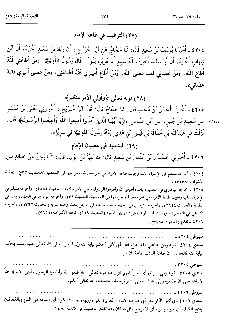 التَّرْغِيبُ فِي طَاعَةِ الْإِمَامِ 4204 - أَخْبَرَنَا يُوسُفُ بْنُ سَعِيدٍ قَالَ حَدَّثَنَا حَجَّاجٌ عَنْ ابْنِ جُرَيْجٍ أَنَّ زِيَادَ بْنَ سَعْدٍ أَخْبَرَهُ أَنَّ ابْنَ شِهَابٍ أَخْبَرَهُ أَنَّ أَبَا سَلَمَةَ أَخْبَرَهُ أَنَّهُ سَمِعَ أَبَا هُرَيْرَةَ يَقُولُ قَالَ رَسُولُ اللَّهِ صَلَّى اللَّهُ عَلَيْهِ وَسَلَّمَ مَنْ أَطَاعَنِي فَقَدْ أَطَاعَ اللَّهَ وَمَنْ عَصَانِي فَقَدْ عَصَى اللَّهَ وَمَنْ أَطَاعَ أَمِيرِي فَقَدْ أَطَاعَنِي وَمَنْ عَصَى أَمِيرِي فَقَدْ عَصَانِي