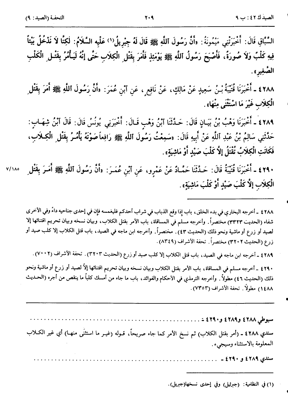 4288 - أَخْبَرَنَا قُتَيْبَةُ بْنُ سَعِيدٍ عَنْ مَالِكٍ عَنْ نَافِعٍ عَنْ ابْنِ عُمَرَ أَنَّ رَسُولَ اللَّهِ صَلَّى اللَّهُ عَلَيْهِ وَسَلَّمَ أَمَرَ بِقَتْلِ الْكِلَابِ غَيْرَ مَا اسْتَثْنَى مِنْهَا