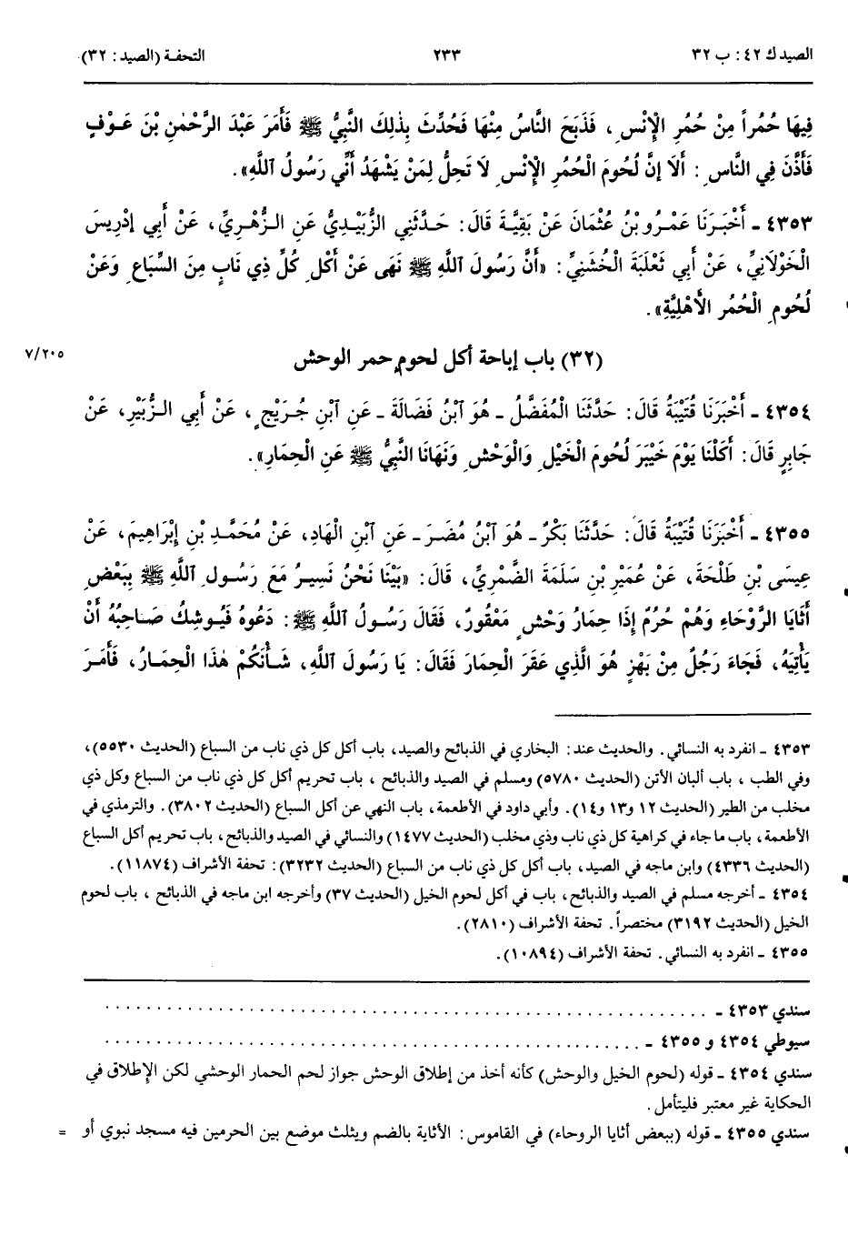 بَاب إِبَاحَةِ أَكْلِ لُحُومِ حُمُرِ الْوَحْشِ 4354 - أَخْبَرَنَا قُتَيْبَةُ قَالَ حَدَّثَنَا الْمُفَضَّلُ هُوَ ابْنُ فَضَالَةَ عَنْ ابْنِ جُرَيْجٍ عَنْ أَبِي الزُّبَيْرِ عَنْ جَابِرٍ قَالَ أَكَلْنَا يَوْمَ خَيْبَرَ لُحُومَ الْخَيْلِ وَالْوَحْشِ وَنَهَانَا النَّبِيُّ صَلَّى اللَّهُ عَلَيْهِ وَسَلَّمَ عَنْ الْحِمَارِ