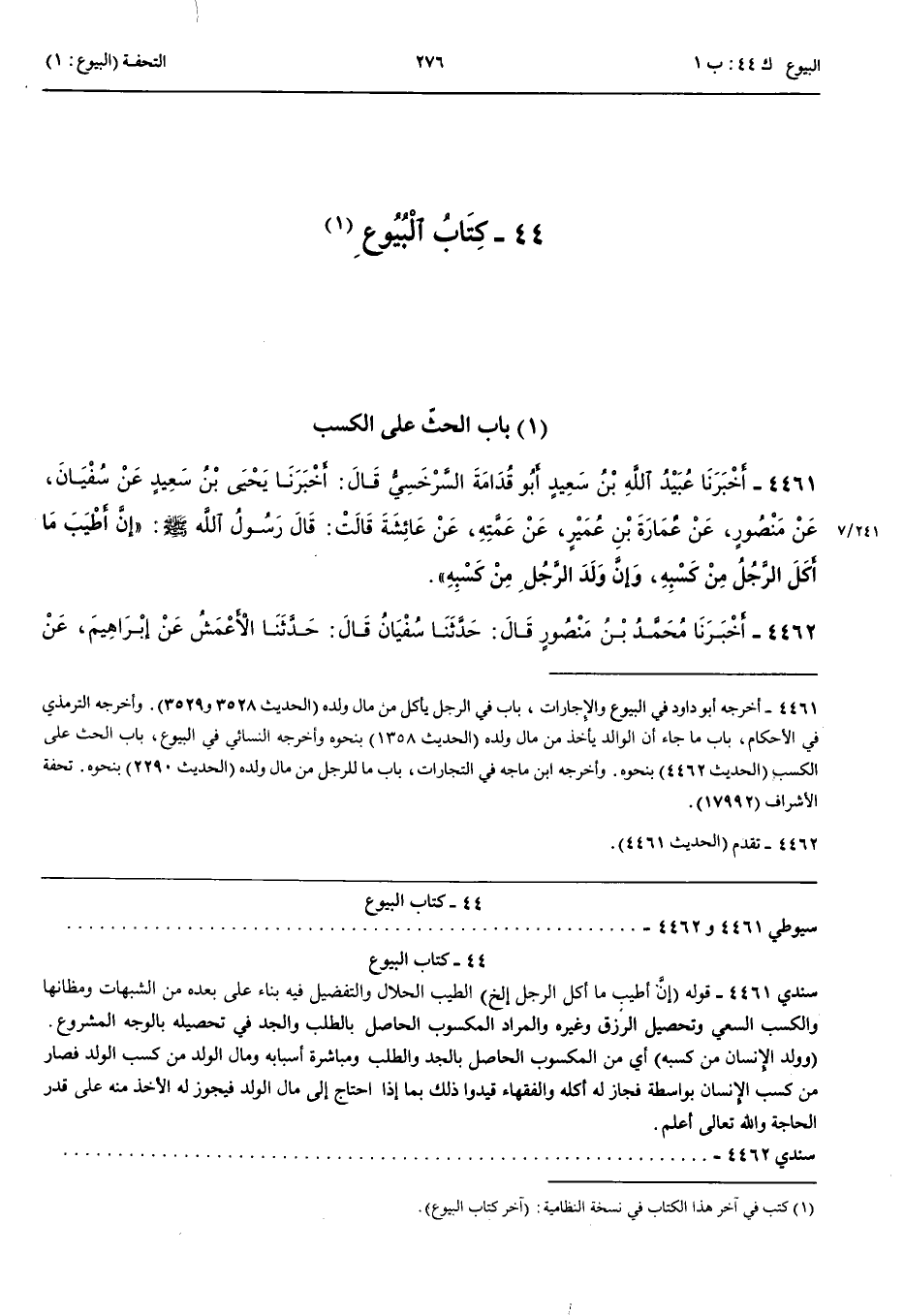 بَاب الْحَثِّ عَلَى الْكَسْبِ 4461 - أَخْبَرَنَا عُبَيْدُ اللَّهِ بْنُ سَعِيدٍ أَبُو قُدَامَةَ السَّرْخَسِيُّ قَالَ حَدَّثَنَا يَحْيَى بْنُ سَعِيدٍ عَنْ سُفْيَانَ عَنْ مَنْصُورٍ عَنْ إِبْرَاهِيمَ عَنْ عُمَارَةَ بْنِ عُمَيْرٍ عَنْ عَمَّتِهِ عَنْ عَائِشَةَ قَالَتْ قَالَ رَسُولُ اللَّهِ صَلَّى اللَّهُ عَلَيْهِ وَسَلَّمَ إِنَّ أَطْيَبَ مَا أَكَلَ الرَّجُلُ مِنْ كَسْبِهِ وَإِنَّ وَلَدَ الرَّجُلِ مِنْ كَسْبِهِ