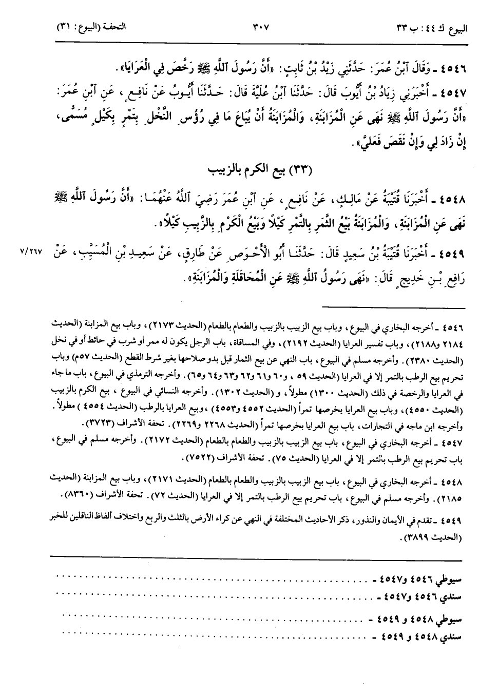بَيْعُ الْكَرْمِ بِالزَّبِيبِ 4548 - أَخْبَرَنَا قُتَيْبَةُ عَنْ مَالِكٍ عَنْ نَافِعٍ عَنْ ابْنِ عُمَرَ رَضِيَ اللَّهُ عَنْهُمَا أَنَّ رَسُولَ اللَّهِ صَلَّى اللَّهُ عَلَيْهِ وَسَلَّمَ نَهَى عَنْ الْمُزَابَنَةِ وَالْمُزَابَنَةُ بَيْعُ الثَّمَرِ بِالتَّمْرِ كَيْلًا وَبَيْعُ الْكَرْمِ بِالزَّبِيبِ كَيْلًا