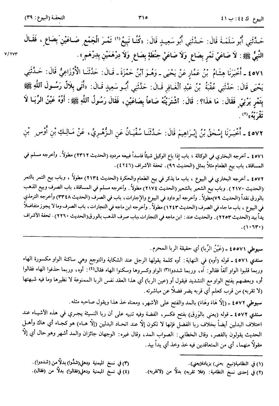 4571 - أَخْبَرَنَا هِشَامُ بْنُ عَمَّارٍ عَنْ يَحْيَى وَهُوَ ابْنُ حَمْزَةَ قَالَ حَدَّثَنَا الْأَوْزَاعِيُّ قَالَ حَدَّثَنِي يَحْيَى قَالَ حَدَّثَنِي عُقْبَةُ بْنُ عَبْدِ الْغَافِرِ قَالَ حَدَّثَنِي أَبُو سَعِيدٍ قَالَ أَتَى بِلَالٌ رَسُولَ اللَّهِ صَلَّى اللَّهُ عَلَيْهِ وَسَلَّمَ بِتَمْرٍ بَرْنِيٍّ فَقَالَ مَا هَذَا قَالَ اشْتَرَيْتُهُ صَاعًا بِصَاعَيْنِ فَقَالَ رَسُولُ اللَّهِ صَلَّى اللَّهُ عَلَيْهِ وَسَلَّمَ أَوِّهْ عَيْنُ الرِّبَا لَا تَقْرَبْهُ