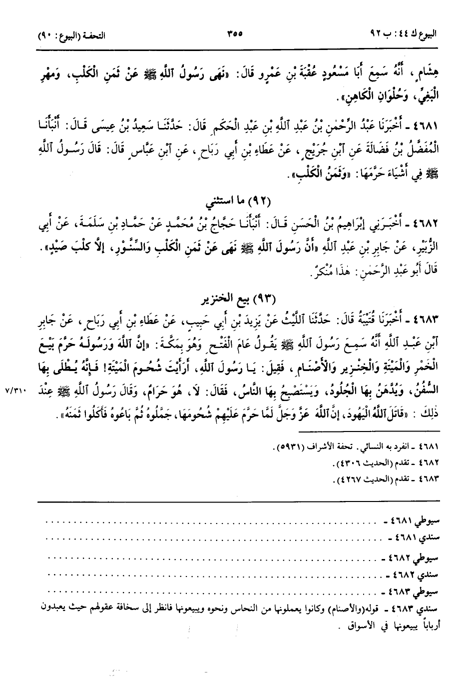 مَا اسْتُثْنِيَ 4682 - أَخْبَرَنِي إِبْرَاهِيمُ بْنُ الْحَسَنِ قَالَ أَنْبَأَنَا حَجَّاجُ بْنُ مُحَمَّدٍ عَنْ حَمَّادِ بْنِ سَلَمَةَ عَنْ أَبِي الزُّبَيْرِ عَنْ جَابِرِ بْنِ عَبْدِ اللَّهِ أَنَّ رَسُولَ اللَّهِ صَلَّى اللَّهُ عَلَيْهِ وَسَلَّمَ نَهَى عَنْ ثَمَنِ الْكَلْبِ وَالسِّنَّوْرِ إِلَّا كَلْبِ صَيْدٍ قَالَ أَبُو عَبْد الرَّحْمَنِ هَذَا مُنْكَرٌ