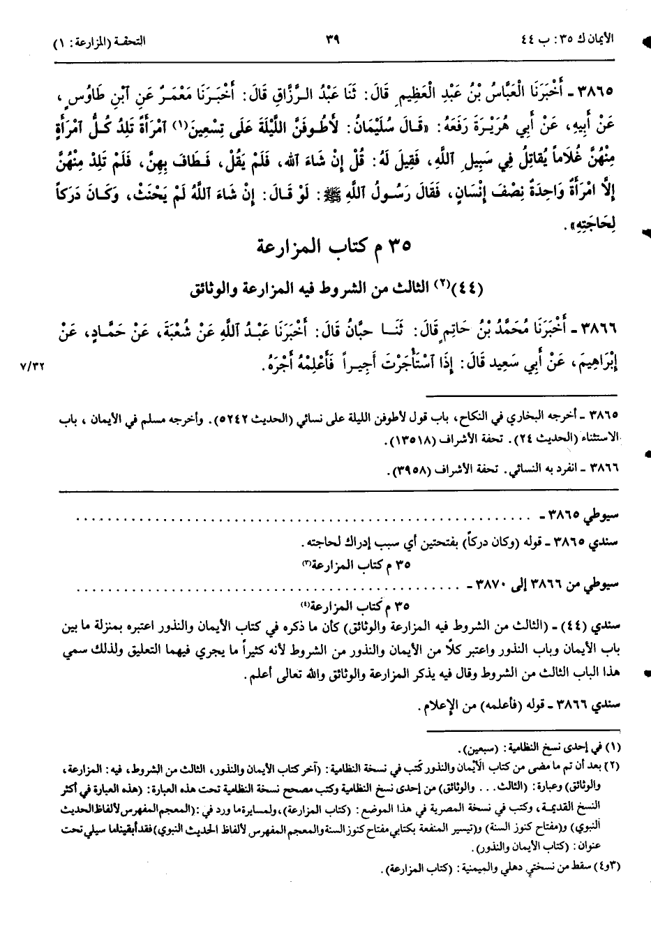 الثَّالِثُ مِنْ الشُّرُوطِ فِيهِ الْمُزَارَعَةُ وَالْوَثَائِقُ