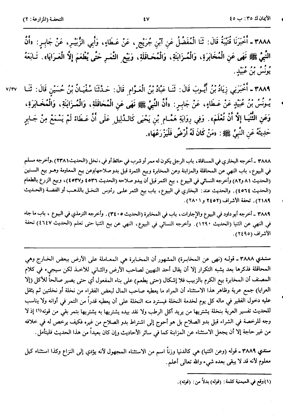 3888 - أَخْبَرَنَا قُتَيْبَةُ قَالَ حَدَّثَنَا الْمُفَضَّلُ عَنْ ابْنِ جُرَيْجٍ عَنْ عَطَاءٍ وَأَبِي الزُّبَيْرِ عَنْ جَابِرٍ أَنَّ النَّبِيَّ صَلَّى اللَّهُ عَلَيْهِ وَسَلَّمَ نَهَى عَنْ الْمُخَابَرَةِ وَالْمُزَابَنَةِ وَالْمُحَاقَلَةِ وَبَيْعِ الثَّمَرِ حَتَّى يُطْعَمَ إِلَّا الْعَرَايَا تَابَعَهُ يُونُسُ بْنُ عُبَيْدٍ