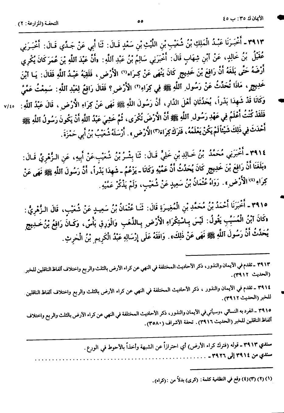 3913 - أَخْبَرَنَا عَبْدُ الْمَلِكِ بْنُ شُعَيْبِ بْنِ اللَّيْثِ بْنِ سَعْدٍ قَالَ حَدَّثَنَا أَبِي عَنْ جَدِّي قَالَ أَخْبَرَنِي عُقَيْلُ بْنُ خَالِدٍ عَنْ ابْنِ شِهَابٍ قَالَ أَخْبَرَنِي سَالِمُ بْنُ عَبْدِ اللَّهِ أَنَّ عَبْدَ اللَّهِ بْنَ عُمَرَ كَانَ يُكْرِي أَرْضَهُ حَتَّى بَلَغَهُ أَنَّ رَافِعَ بْنَ خَدِيجٍ كَانَ يَنْهَى عَنْ كِرَاءِ الْأَرْضِ فَلَقِيَهُ عَبْدُ اللَّهِ فَقَالَ يَا ابْنَ خَدِيجٍ مَاذَا تُحَدِّثُ عَنْ رَسُولِ اللَّهِ صَلَّى اللَّهُ عَلَيْهِ وَسَلَّمَ فِي كِرَاءِ الْأَرْضِ فَقَالَ رَافِعٌ لِعَبْدِ اللَّهِ سَمِعْتُ عَمَّيَّ وَكَانَا قَدْ شَهِدَا بَدْرًا يُحَدِّثَانِ أَهْلَ الدَّارِ أَنَّ رَسُولَ اللَّهِ صَلَّى اللَّهُ عَلَيْهِ وَسَلَّمَ نَهَى عَنْ كِرَاءِ الْأَرْضِ قَالَ عَبْدُ اللَّهِ فَلَقَدْ كُنْتُ أَعْلَمُ فِي عَهْدِ رَسُولِ اللَّهِ صَلَّى اللَّهُ عَلَيْهِ وَسَلَّمَ أَنَّ الْأَرْضَ تُكْرَى ثُمَّ خَشِيَ عَبْدُ اللَّهِ أَنْ يَكُونَ رَسُولُ اللَّهِ صَلَّى اللَّهُ عَلَيْهِ وَسَلَّمَ أَحْدَثَ فِي ذَلِكَ شَيْئًا لَمْ يَكُنْ يَعْلَمُهُ فَتَرَكَ كِرَاءَ الْأَرْضِ أَرْسَلَهُ شُعَيْبُ بْنُ أَبِي حَمْزَةَ