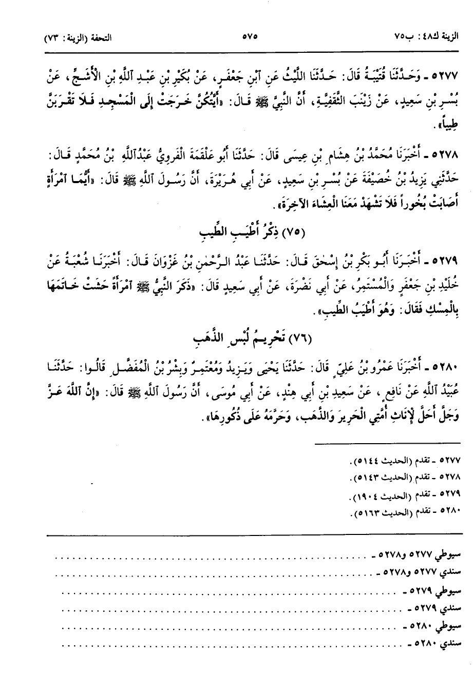 5277 - و حَدَّثَنَا قُتَيْبَةُ قَالَ حَدَّثَنَا اللَّيْثُ عَنْ ابْنِ أَبِي جَعْفَرٍ عَنْ بُكَيْرِ بْنِ عَبْدِ اللَّهِ بْنِ الْأَشَجِّ عَنْ بُسْرِ بْنِ سَعِيدٍ عَنْ زَيْنَبَ الثَّقَفِيَّةِ أَنَّ النَّبِيَّ صَلَّى اللَّهُ عَلَيْهِ وَسَلَّمَ قَالَ أَيَّتُكُنَّ خَرَجَتْ إِلَى الْمَسْجِدِ فَلَا تَقْرَبَنَّ طِيبًا