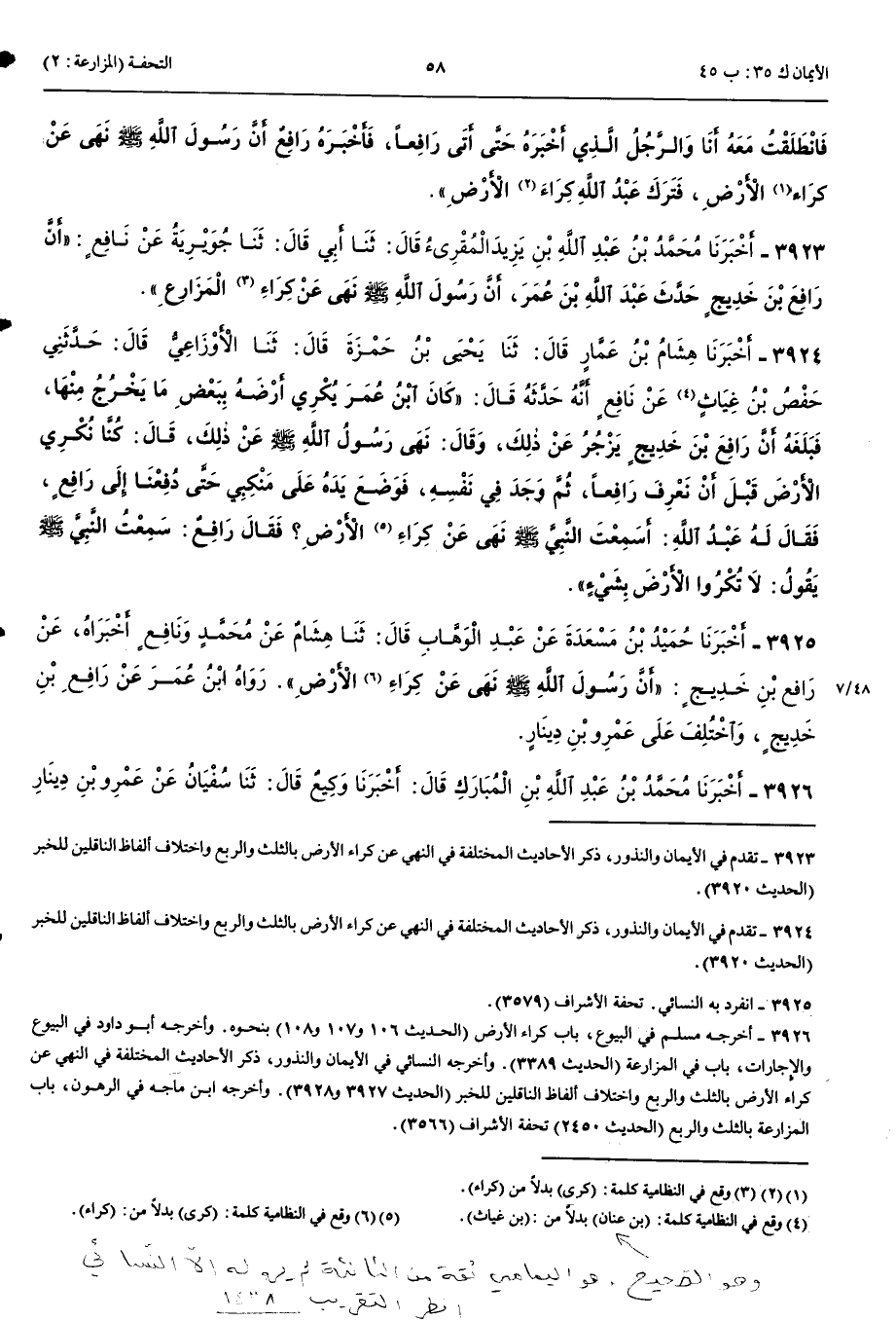 3925 - أَخْبَرَنَا حُمَيْدُ بْنُ مَسْعَدَةَ عَنْ عَبْدِ الْوَهَّابِ قَالَ حَدَّثَنَا هِشَامٌ عَنْ مُحَمَّدٍ وَنَافِعٍ أَخْبَرَاهُ عَنْ رَافِعِ بْنِ خَدِيجٍ أَنَّ رَسُولَ اللَّهِ صَلَّى اللَّهُ عَلَيْهِ وَسَلَّمَ نَهَى عَنْ كِرَاءِ الْأَرْضِ رَوَاهُ ابْنُ عُمَرَ عَنْ رَافِعِ بْنِ خَدِيجٍ وَاخْتُلِفَ عَلَى عَمْرِو بْنِ دِينَارٍ