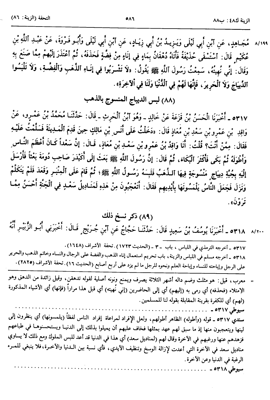 لُبْسُ الدِّيبَاجِ الْمَنْسُوجِ بِالذَّهَبِ 5317 - أَخْبَرَنَا الْحَسَنُ بْنُ قَزَعَةَ عَنْ خَالِدٍ وَهُوَ ابْنُ الْحَارِثِ قَالَ حَدَّثَنَا مُحَمَّدُ بْنُ عَمْرٍو عَنْ وَاقِدِ بْنِ عَمْرِو بْنِ سَعْدِ بْنِ مُعَاذٍ قَالَ دَخَلْتُ عَلَى أَنَسِ بْنِ مَالِكٍ حِينَ قَدِمَ الْمَدِينَةَ فَسَلَّمْتُ عَلَيْهِ فَقَالَ مِمَّنْ أَنْتَ قُلْتُ أَنَا وَاقِدُ بْنُ عَمْرِو بْنِ سَعْدِ بْنِ مُعَاذٍ قَالَ إِنَّ سَعْدًا كَانَ أَعْظَمَ النَّاسِ وَأَطْوَلَهُ ثُمَّ بَكَى فَأَكْثَرَ الْبُكَاءَ ثُمَّ قَالَ إِنَّ رَسُولَ اللَّهِ صَلَّى اللَّهُ عَلَيْهِ وَسَلَّمَ بَعَثَ إِلَى أُكَيْدِرٍ صَاحِبِ دُومَةَ بَعْثًا فَأَرْسَلَ إِلَيْهِ بِجُبَّةِ دِيبَاجٍ مَنْسُوجَةٍ فِيهَا الذَّهَبُ فَلَبِسَهُ رَسُولُ اللَّهِ صَلَّى اللَّهُ عَلَيْهِ وَسَلَّمَ ثُمَّ قَامَ عَلَى الْمِنْبَرِ وَقَعَدَ فَلَمْ يَتَكَلَّمْ وَنَزَلَ فَجَعَلَ النَّاسُ يَلْمِسُونَهَا بِأَيْدِيهِمْ فَقَالَ أَتَعْجَبُونَ مِنْ هَذِهِ لَمَنَادِيلُ سَعْدٍ فِي الْجَنَّةِ أَحْسَنُ مِمَّا تَرَوْنَ