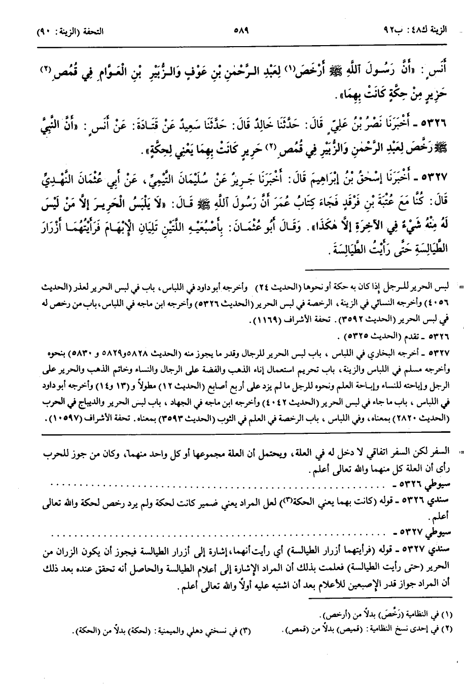 5326 - أَخْبَرَنَا نَصْرُ بْنُ عَلِيٍّ قَالَ حَدَّثَنَا خَالِدٌ قَالَ حَدَّثَنَا سَعِيدٌ عَنْ قَتَادَةَ عَنْ أَنَسٍ أَنَّ النَّبِيَّ صَلَّى اللَّهُ عَلَيْهِ وَسَلَّمَ رَخَّصَ لِعَبْدِ الرَّحْمَنِ وَالزُّبَيْرِ فِي قُمُصِ حَرِيرٍ كَانَتْ بِهِمَا يَعْنِي لِحِكَّةٍ