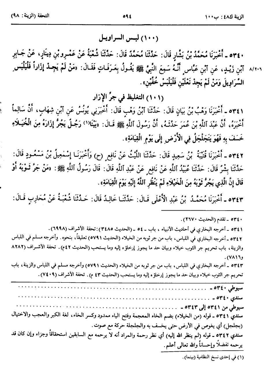 5342 - أَخْبَرَنَا قُتَيْبَةُ بْنُ سَعِيدٍ قَالَ حَدَّثَنَا اللَّيْثُ عَنْ نَافِعٍ ح وَأَنْبَأَنَا إِسْمَعِيلُ بْنُ مَسْعُودٍ قَالَ حَدَّثَنَا بِشْرٌ قَالَ حَدَّثَنَا عُبَيْدُ اللَّهِ عَنْ نَافِعٍ عَنْ عَبْدِ اللَّهِ قَالَ قَالَ رَسُولُ اللَّهِ صَلَّى اللَّهُ عَلَيْهِ وَسَلَّمَ مَنْ جَرَّ ثَوْبَهُ أَوْ قَالَ إِنَّ الَّذِي يَجُرُّ ثَوْبَهُ مِنْ الْخُيَلَاءِ لَمْ يَنْظُرْ اللَّهُ إِلَيْهِ يَوْمَ الْقِيَامَةِ