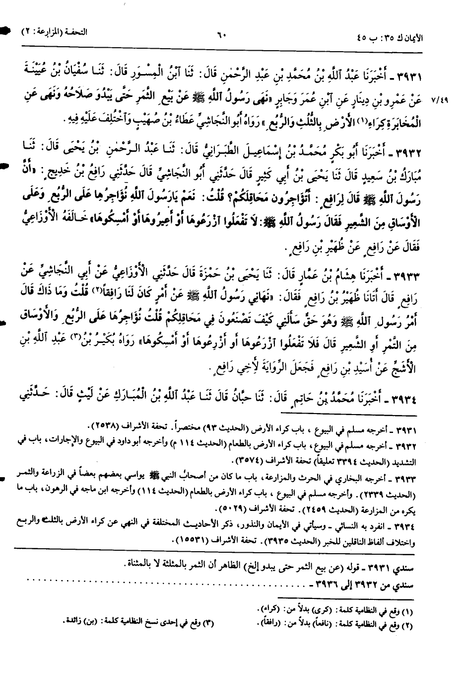 3932 - أَخْبَرَنَا أَبُو بَكْرٍ مُحَمَّدُ بْنُ إِسْمَعِيلَ الطَّبَرَانِيُّ قَالَ حَدَّثَنَا عَبْدُ الرَّحْمَنِ بْنُ بَحْرٍ قَالَ حَدَّثَنَا مُبَارَكُ بْنُ سَعِيدٍ قَالَ حَدَّثَنَا يَحْيَى بْنُ أَبِي كَثِيرٍ قَالَ حَدَّثَنِي أَبُو النَّجَاشِيِّ قَالَ حَدَّثَنِي رَافِعُ بْنُ خَدِيجٍ أَنَّ رَسُولَ اللَّهِ صَلَّى اللَّهُ عَلَيْهِ وَسَلَّمَ قَالَ لِرَافِعٍ أَتُؤَاجِرُونَ مَحَاقِلَكُمْ قُلْتُ نَعَمْ يَا رَسُولَ اللَّهِ نُؤَاجِرُهَا عَلَى الرُّبُعِ وَعَلَى الْأَوْسَاقِ مِنْ الشَّعِيرِ فَقَالَ رَسُولُ اللَّهِ صَلَّى اللَّهُ عَلَيْهِ وَسَلَّمَ لَا تَفْعَلُوا ازْرَعُوهَا أَوْ أَعِيرُوهَا أَوْ امْسِكُوهَا خَالَفَهُ الْأَوْزَاعِيُّ فَقَالَ عَنْ رَافِعٍ عَنْ ظُهَيْرِ بْنِ رَافِعٍ