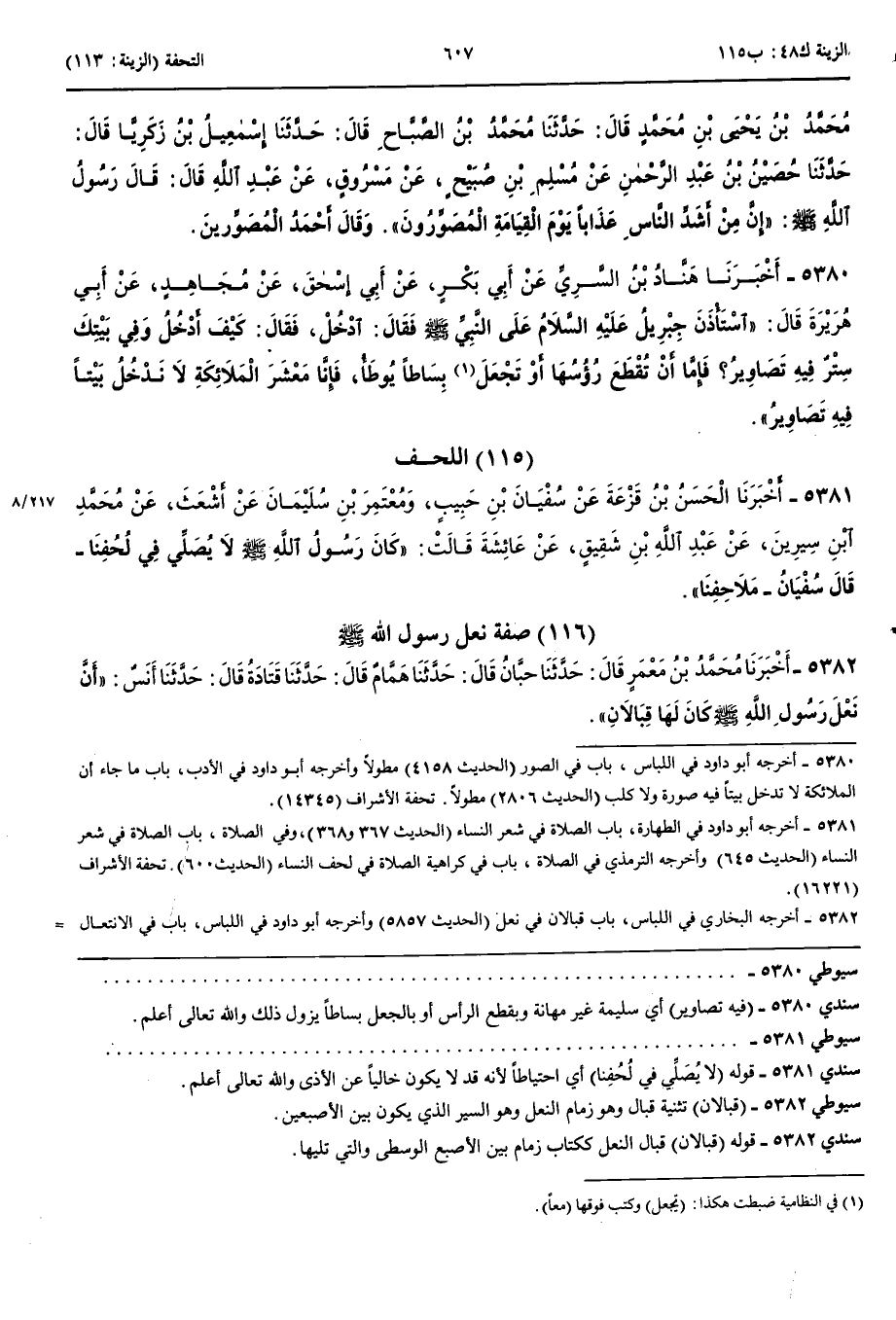 5380 - أَخْبَرَنَا هَنَّادُ بْنُ السَّرِيِّ عَنْ أَبِي بَكْرٍ عَنْ أَبِي إِسْحَقَ عَنْ مُجَاهِدٍ عَنْ أَبِي هُرَيْرَةَ قَالَ اسْتَأْذَنَ جِبْرِيلُ عَلَيْهِ السَّلَام عَلَى النَّبِيِّ صَلَّى اللَّهُ عَلَيْهِ وَسَلَّمَ فَقَالَ ادْخُلْ فَقَالَ كَيْفَ أَدْخُلُ وَفِي بَيْتِكَ سِتْرٌ فِيهِ تَصَاوِيرُ فَإِمَّا أَنْ تُقْطَعَ رُءُوسُهَا أَوْ تُجْعَلَ بِسَاطًا يُوطَأُ فَإِنَّا مَعْشَرَ الْمَلَائِكَةِ لَا نَدْخُلُ بَيْتًا فِيهِ تَصَاوِيرُ
