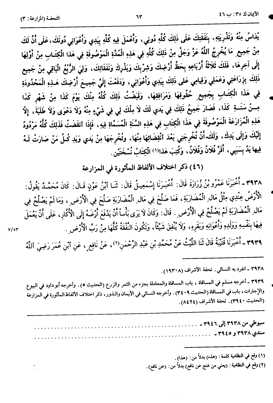 3939 - أَخْبَرَنَا قُتَيْبَةُ قَالَ حَدَّثَنَا اللَّيْثُ عَنْ مُحَمَّدِ بْنِ عَبْدِ الرَّحْمَنِ عَنْ نَافِعٍ عَنْ ابْنِ عُمَرَ رَضِيَ اللَّهُ عَنْهُمَا أَنَّ النَّبِيَّ صَلَّى اللَّهُ عَلَيْهِ وَسَلَّمَ دَفَعَ إِلَى يَهُودِ خَيْبَرَ نَخْلَ خَيْبَرَ وَأَرْضَهَا عَلَى أَنْ يَعْمَلُوهَا مِنْ أَمْوَالِهِمْ وَأَنَّ لِرَسُولِ اللَّهِ صَلَّى اللَّهُ عَلَيْهِ وَسَلَّمَ شَطْرَ مَا يَخْرُجُ مِنْهَا