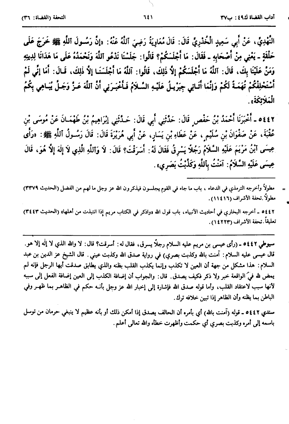 5442 - أَخْبَرَنَا أَحْمَدُ بْنُ حَفْصٍ قَالَ حَدَّثَنِي أَبِي قَالَ حَدَّثَنِي إِبْرَاهِيمُ بْنُ طَهْمَانَ عَنْ مُوسَى بْنِ عُقْبَةَ عَنْ صَفْوَانَ بْنِ سُلَيْمٍ عَنْ عَطَاءِ بْنِ يَسَارٍ عَنْ أَبِي هُرَيْرَةَ قَالَ قَالَ رَسُولُ اللَّهِ صَلَّى اللَّهُ عَلَيْهِ وَسَلَّمَ رَأَى عِيسَى ابْنُ مَرْيَمَ عَلَيْهِ السَّلَام رَجُلًا يَسْرِقُ فَقَالَ لَهُ أَسَرَقْتَ قَالَ لَا وَاللَّهِ الَّذِي لَا إِلَهَ إِلَّا هُوَ قَالَ عِيسَى عَلَيْهِ السَّلَام آمَنْتُ بِاللَّهِ وَكَذَّبْتُ بَصَرِي