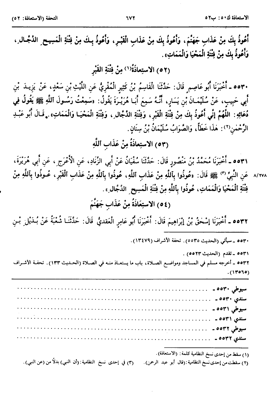 الِاسْتِعَاذَةُ مِنْ عَذَابِ جَهَنَّمَ 5532 - أَخْبَرَنَا إِسْحَقُ بْنُ إِبْرَاهِيمَ قَالَ أَنْبَأَنَا أَبُو عَامِرٍ الْعَقَدِيُّ قَالَ حَدَّثَنَا شُعْبَةُ عَنْ بُدَيْلِ بْنِ مَيْسَرَةَ عَنْ عَبْدِ اللَّهِ بْنِ شَقِيقٍ عَنْ أَبِي هُرَيْرَةَ قَالَ كَانَ رَسُولُ اللَّهِ صَلَّى اللَّهُ عَلَيْهِ وَسَلَّمَ يَتَعَوَّذُ مِنْ عَذَابِ جَهَنَّمَ وَعَذَابِ الْقَبْرِ وَالْمَسِيحِ الدَّجَّالِ