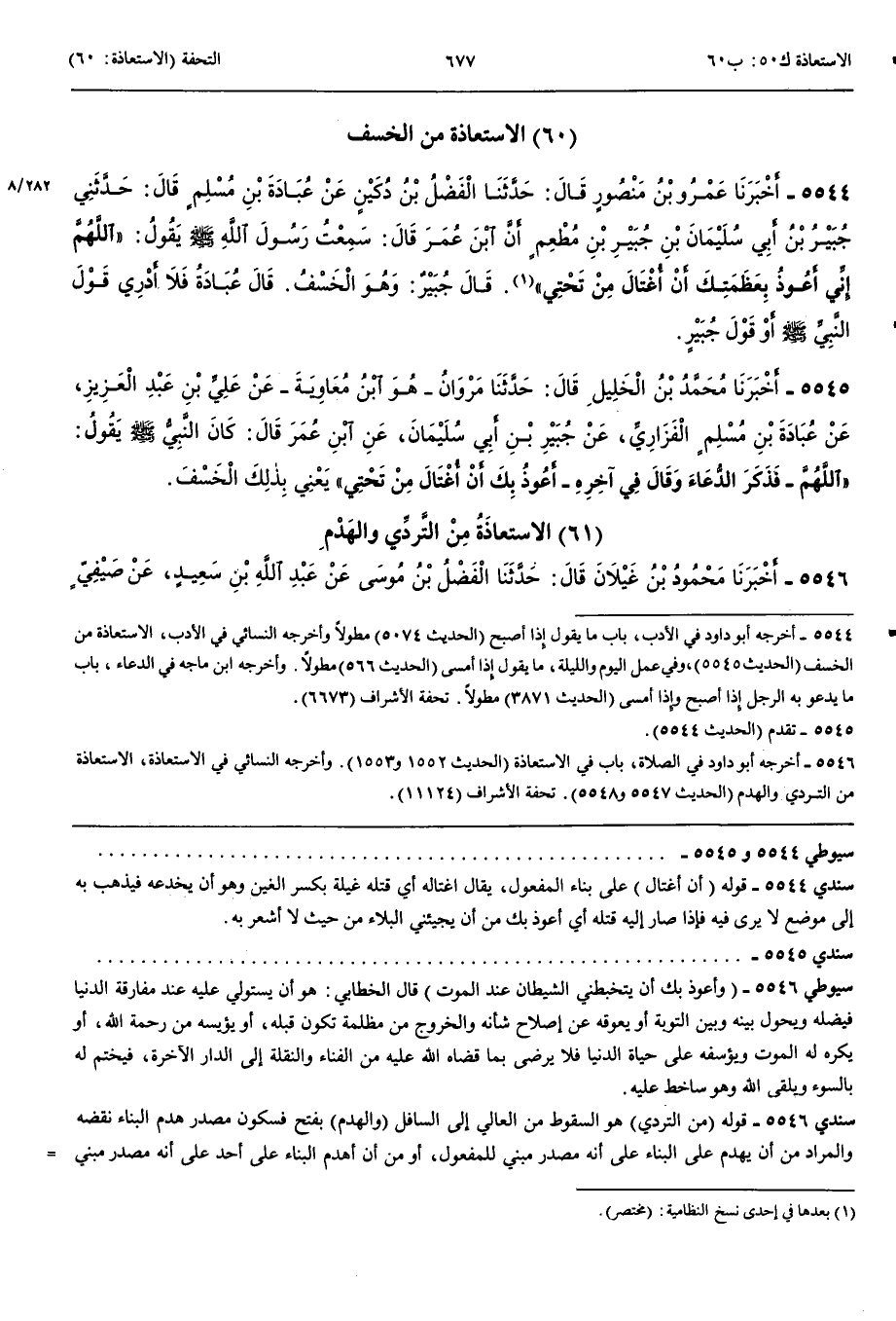 الِاسْتِعَاذَةُ مِنْ الْخَسْفِ 5544 - أَخْبَرَنَا عَمْرُو بْنُ مَنْصُورٍ قَالَ حَدَّثَنَا الْفَضْلُ بْنُ دُكَيْنٍ عَنْ عُبَادَةَ بْنِ مُسْلِمٍ قَالَ حَدَّثَنِي جُبَيْرُ بْنُ أَبِي سُلَيْمَانَ بْنِ جُبَيْرِ بْنِ مُطْعِمٍ أَنَّ ابْنَ عُمَرَ قَالَ سَمِعْتُ رَسُولَ اللَّهِ صَلَّى اللَّهُ عَلَيْهِ وَسَلَّمَ يَقُولُ اللَّهُمَّ إِنِّي أَعُوذُ بِعَظَمَتِكَ أَنْ أُغْتَالَ مِنْ تَحْتِي قَالَ جُبَيْرٌ وَهُوَ الْخَسْفُ قَالَ عُبَادَةُ فَلَا أَدْرِي قَوْلُ النَّبِيِّ صَلَّى اللَّهُ عَلَيْهِ وَسَلَّمَ أَوْ قَوْلُ جُبَيْرٍ